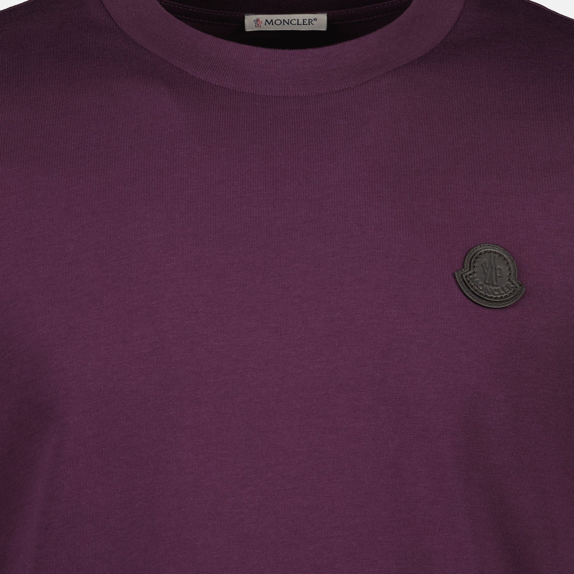 Bordeaux leather logo T-shirt from Moncler, designed for men. This model is part of the Autumn-Winter 2025 collection and is made from cotton jersey.