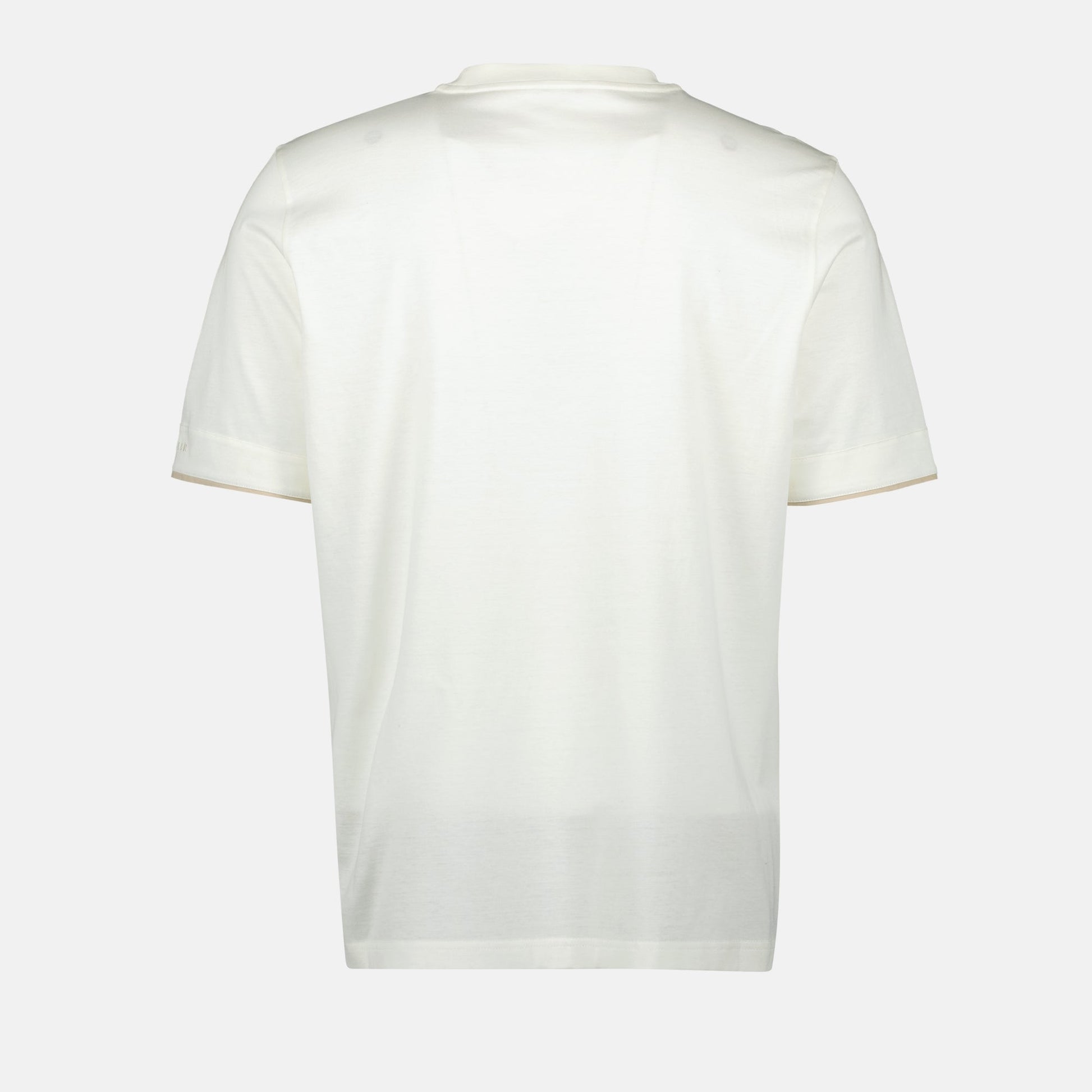 White border T-shirt by Moncler for men, made from piqué cotton with a round neck and short sleeves. This piece is part of the Spring-Summer 2025 collection.