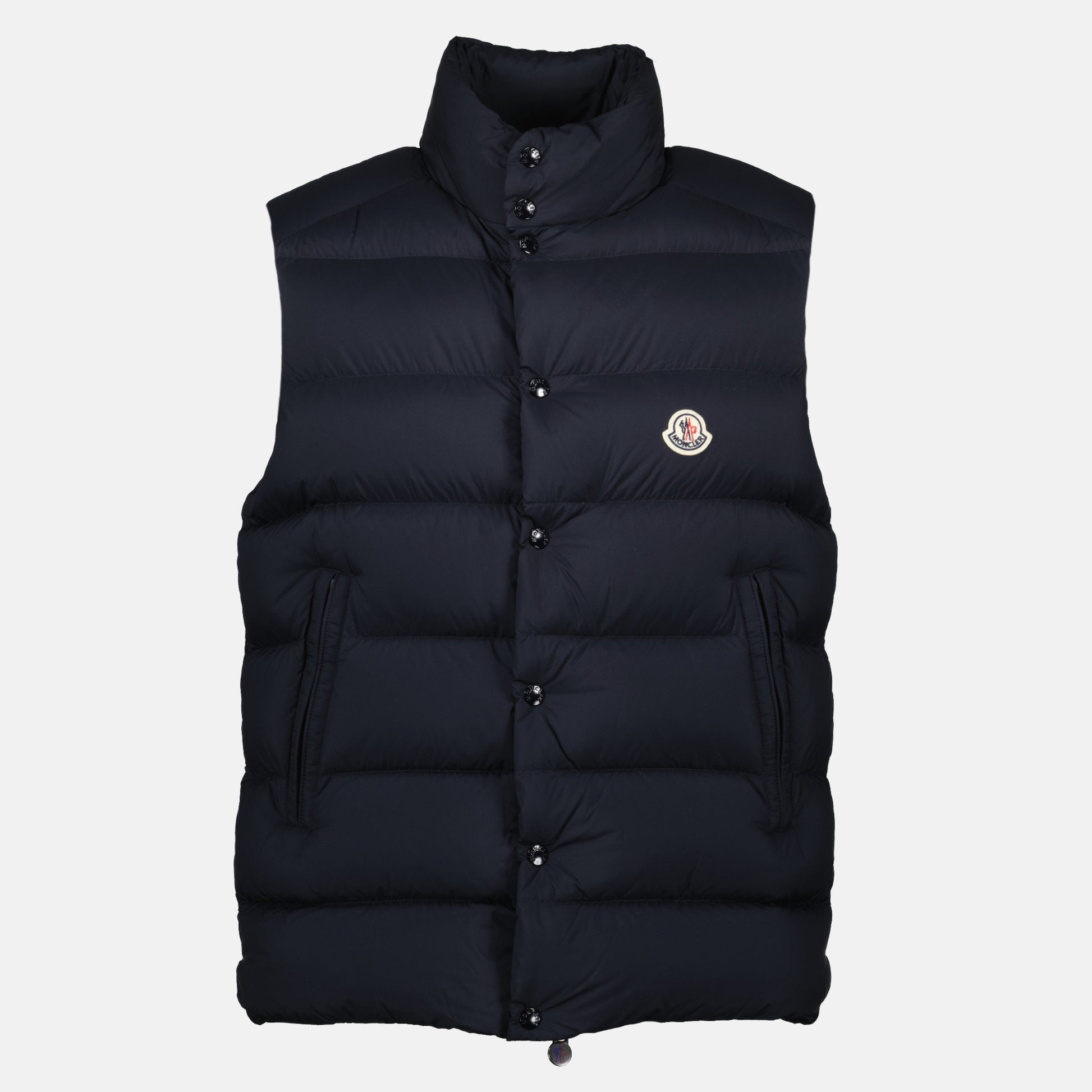 Tibb sleeveless down jacket by Moncler for men, made from navy blue nylon. This piece is part of the Autumn-Winter 2025 collection, combining comfort and style.