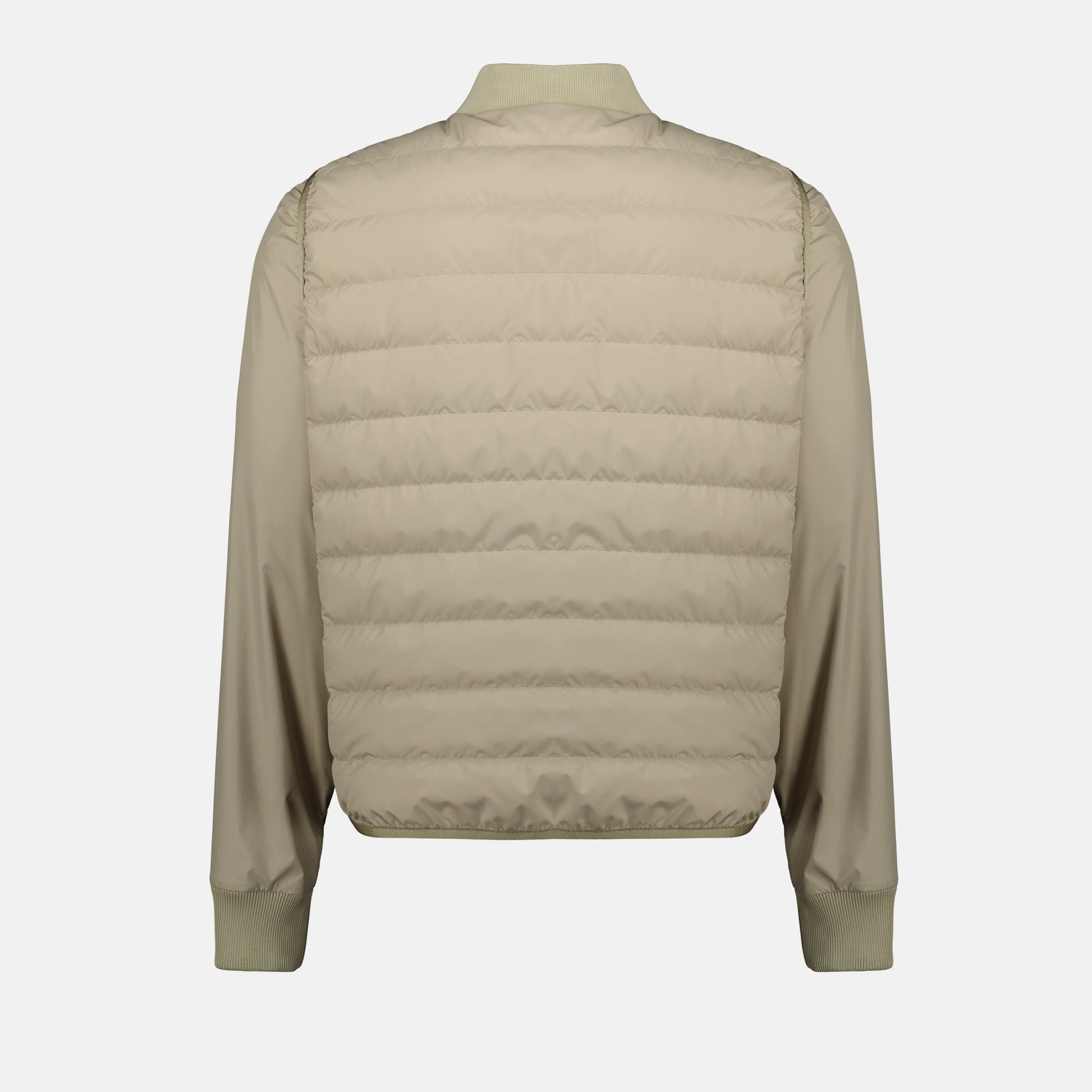 Beige Verney removable jacket by Moncler for men, made from polyester with removable long sleeves and a down-filled vest. Spring-Summer 2025 collection, combining style and functionality.