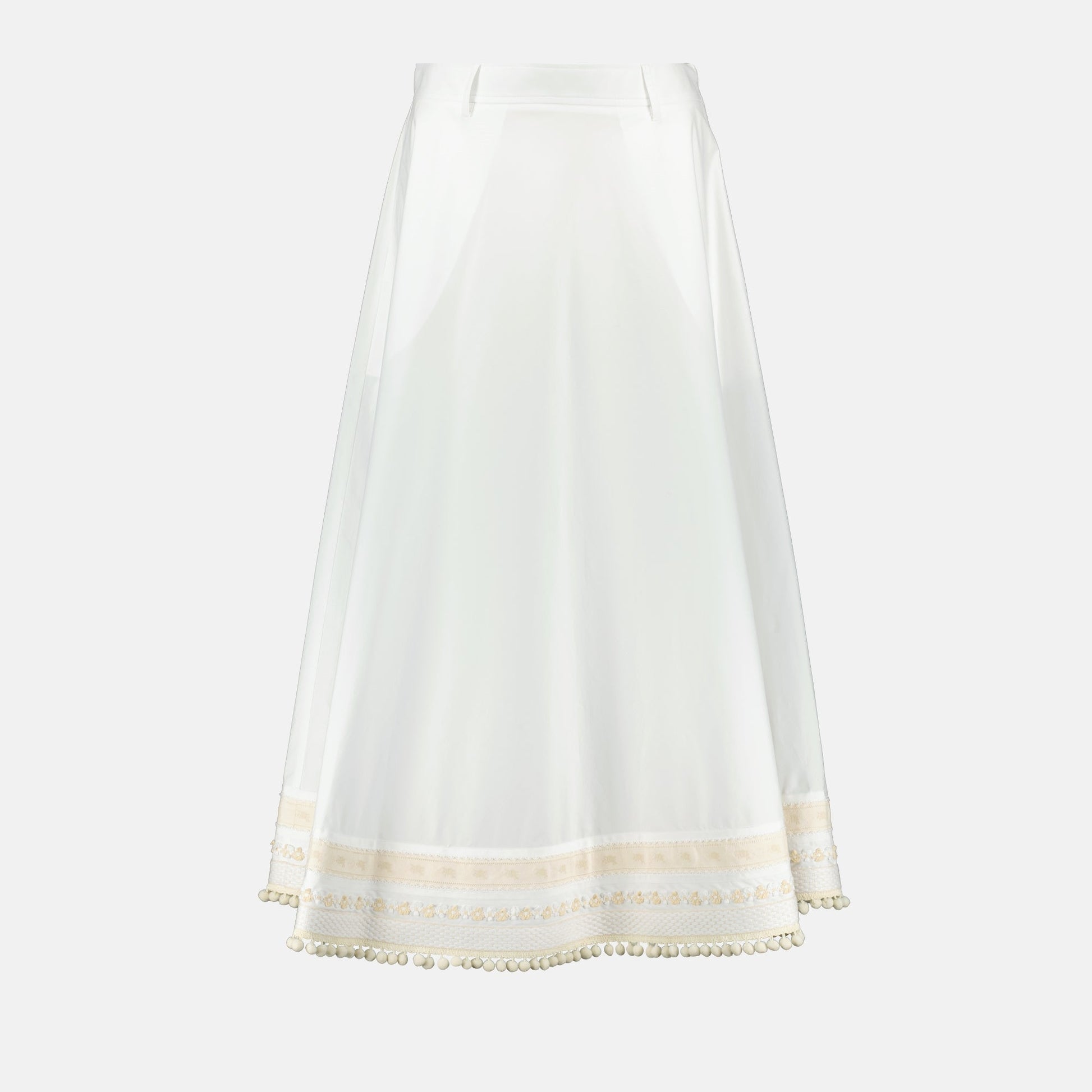 Long poplin skirt with Moschino embroidery for women. This piece is part of the Spring-Summer 2025 collection and features a classic cut with refined details.