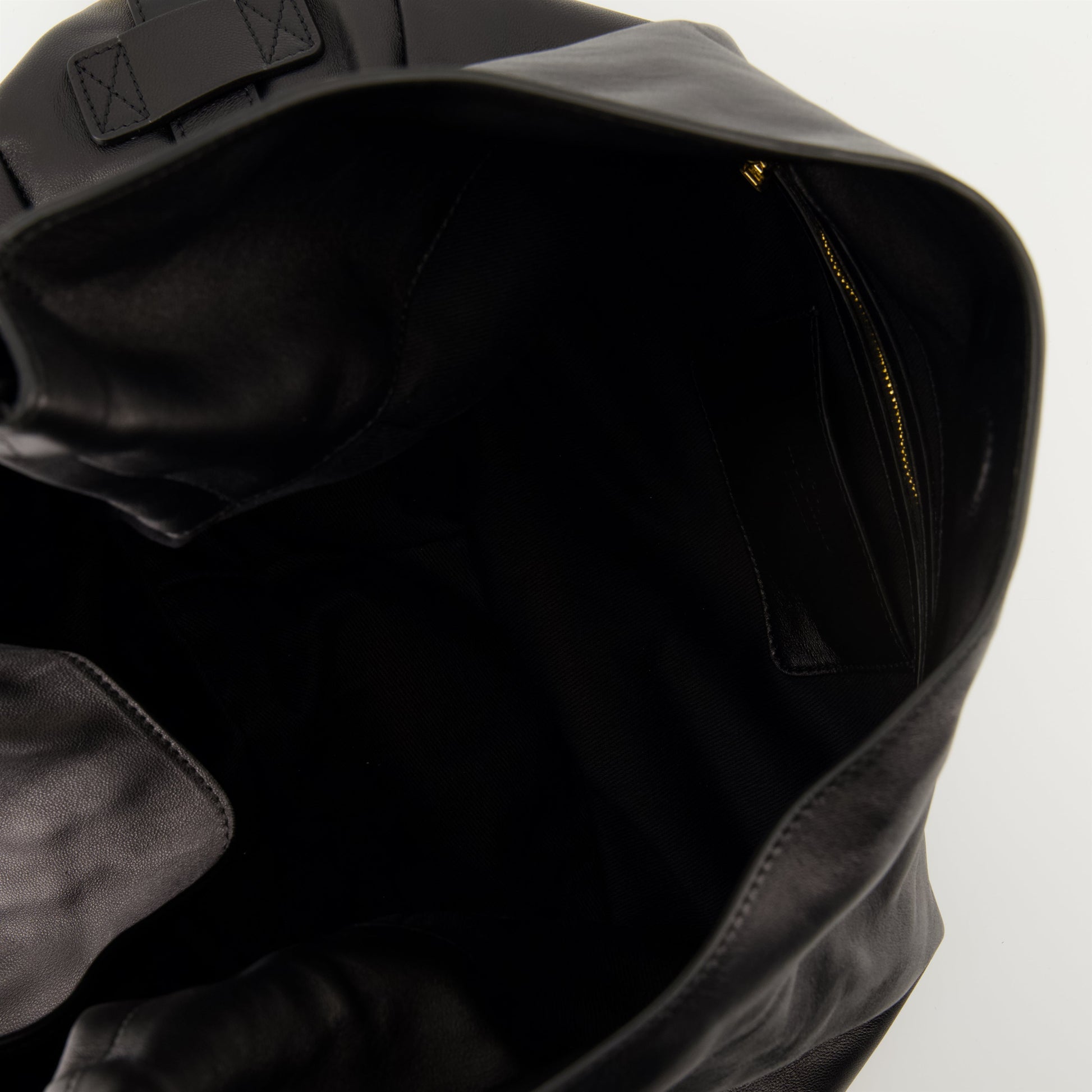 The black Sac Handle Me medium from Moschino is an elegant accessory for women. It is part of the Spring-Summer 2025 collection, made from lamb leather with golden finishes.