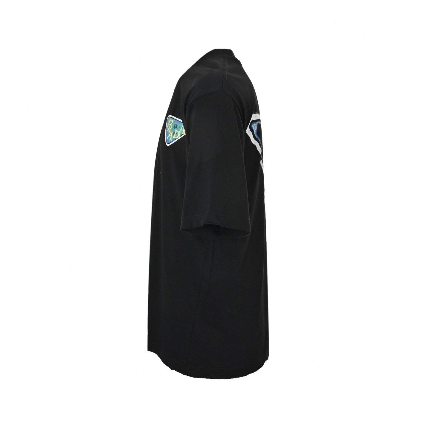 Details: Artistic, hand-painted style Prada triangle logo on the chest and an enlarged version on the back