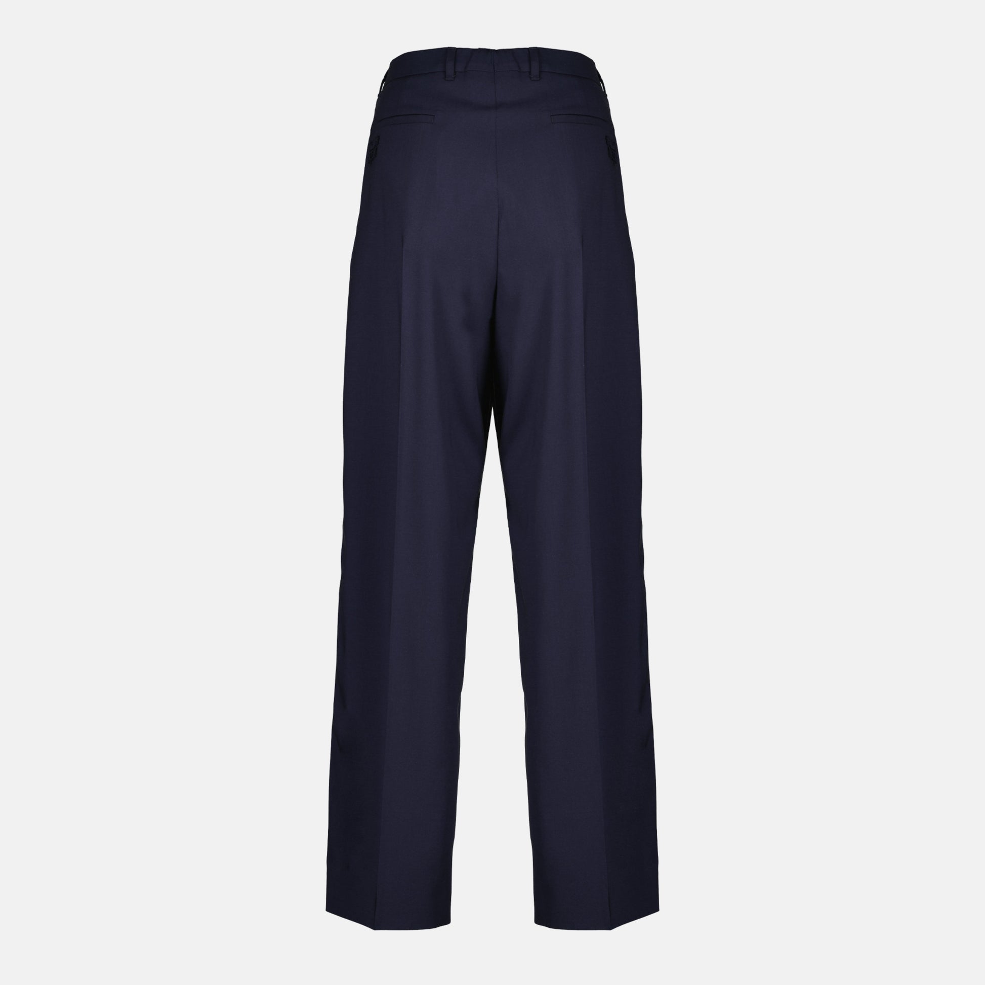 Navy wool trousers from Miu Miu, designed for women. It is part of the Spring-Summer 2026 collection and features a wide cut with several pockets.