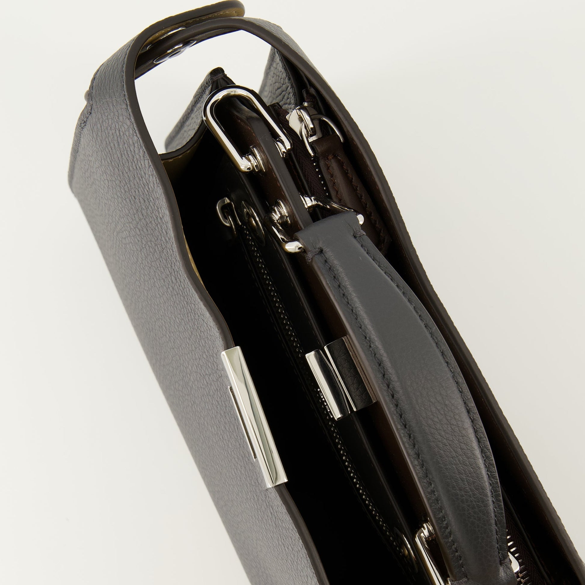 The PeekabooISeeU small bag by Fendi is designed for men. It is part of the Autumn-Winter 2025 collection and is made of calf leather.
