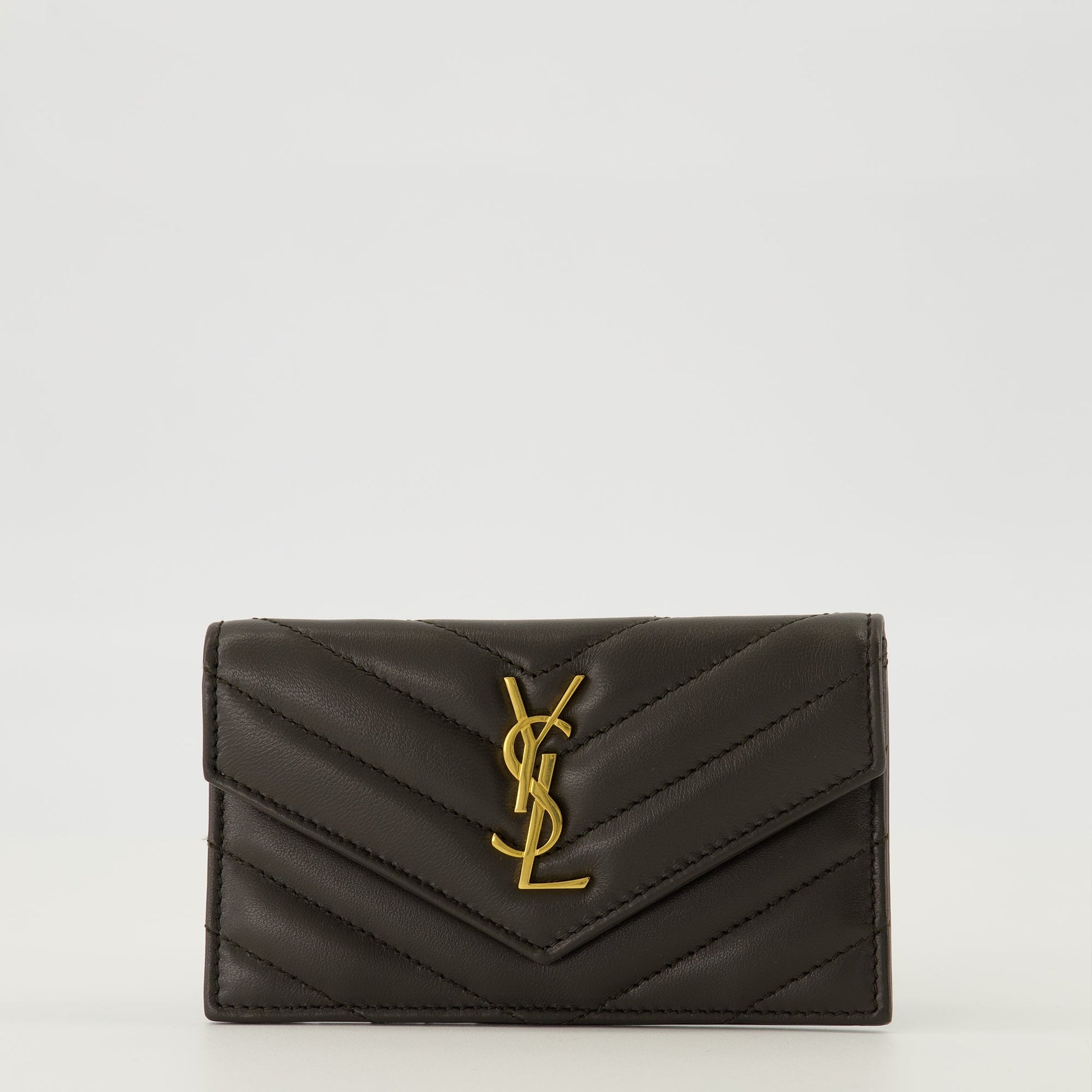 The Cassandre Fragments brown card holder from Saint Laurent is a women's accessory. It is part of the Autumn-Winter 2025 collection.