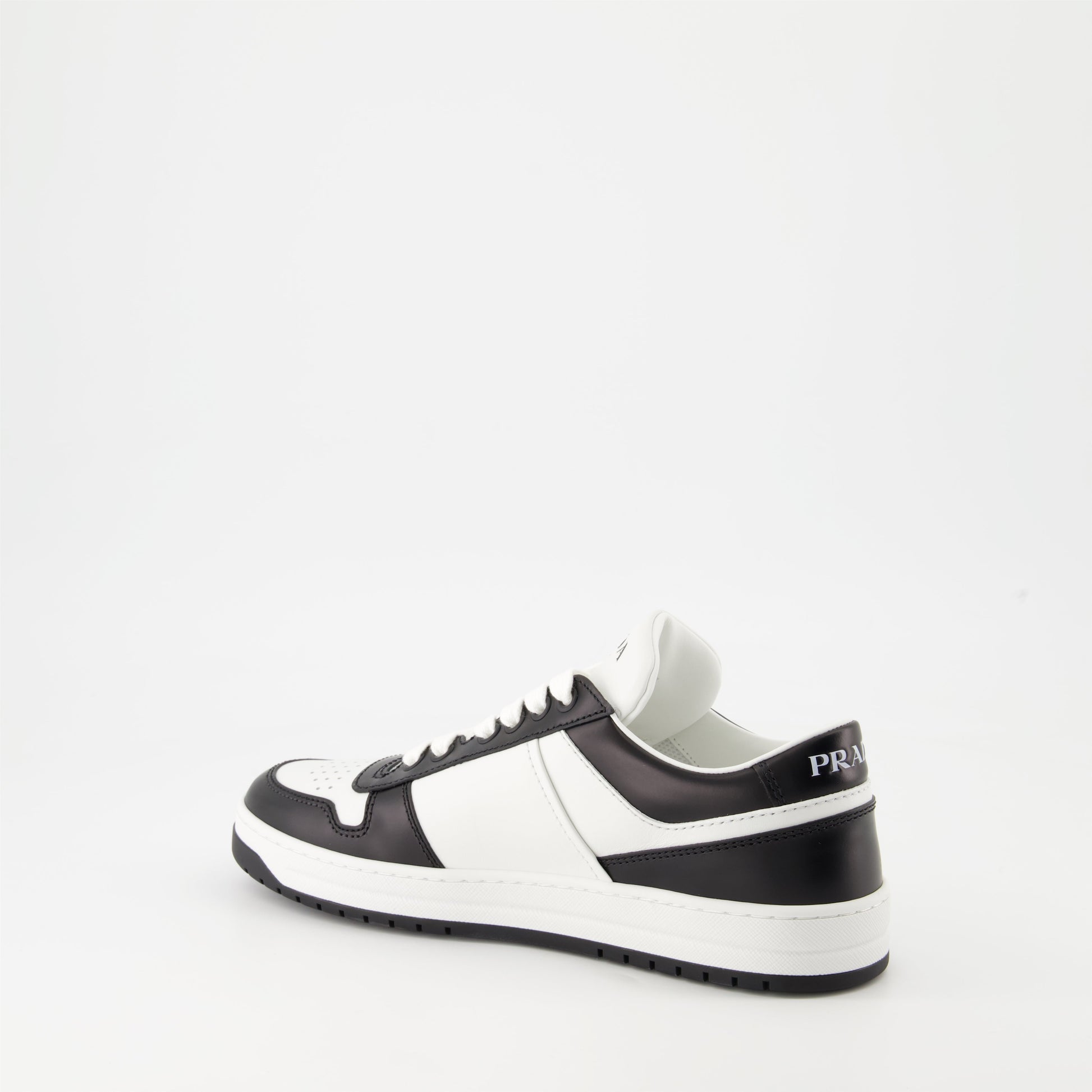 Downtown sneakers from the Prada Autumn-Winter 2024 collection for women. Made of smooth leather. Article in Black. Round toe and rubber treaded sole.