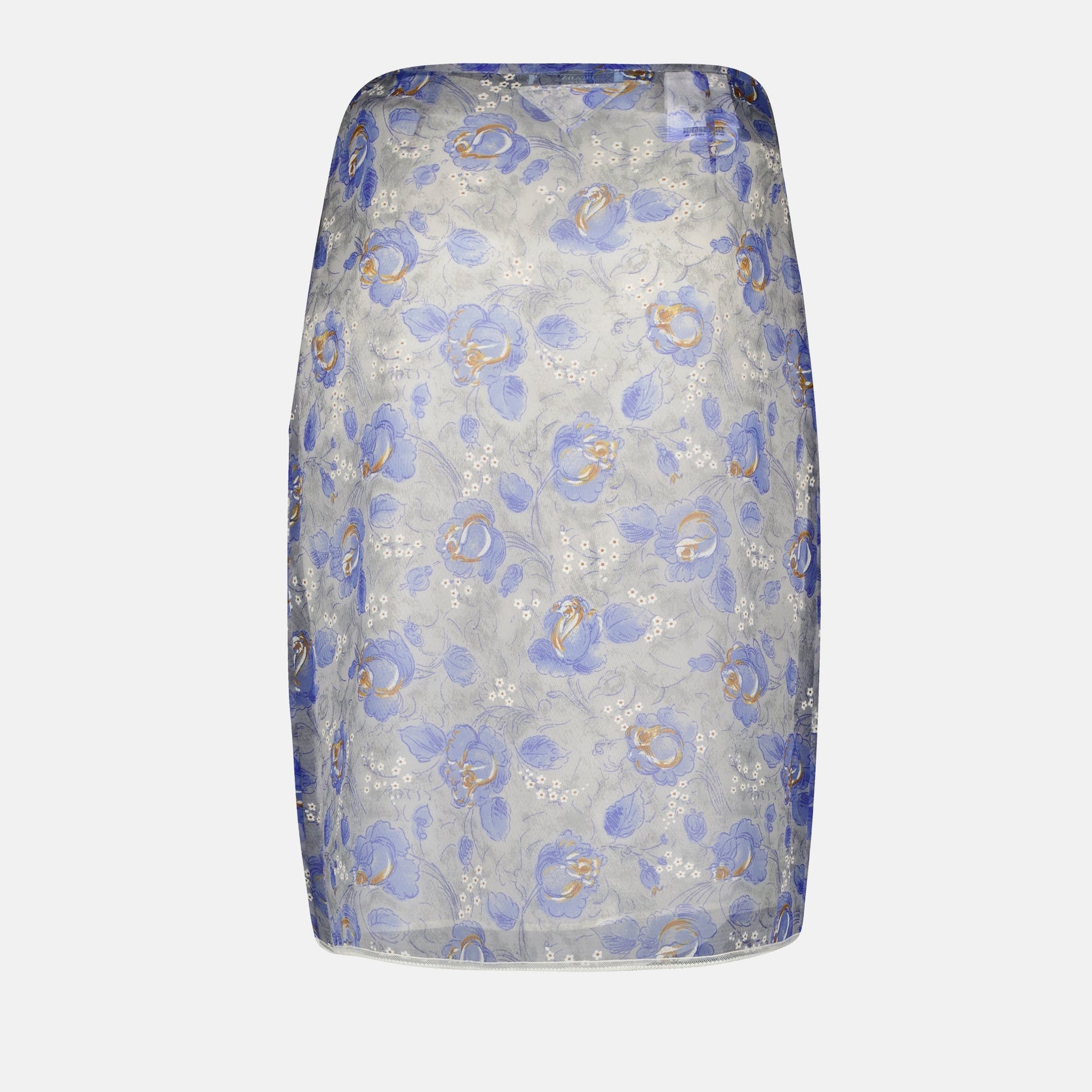 Printed nylonette skirt from the Prada Fall-Winter 2024 collection for Women. Made from recycled nylon. Flower printed Peony in shades of blue.