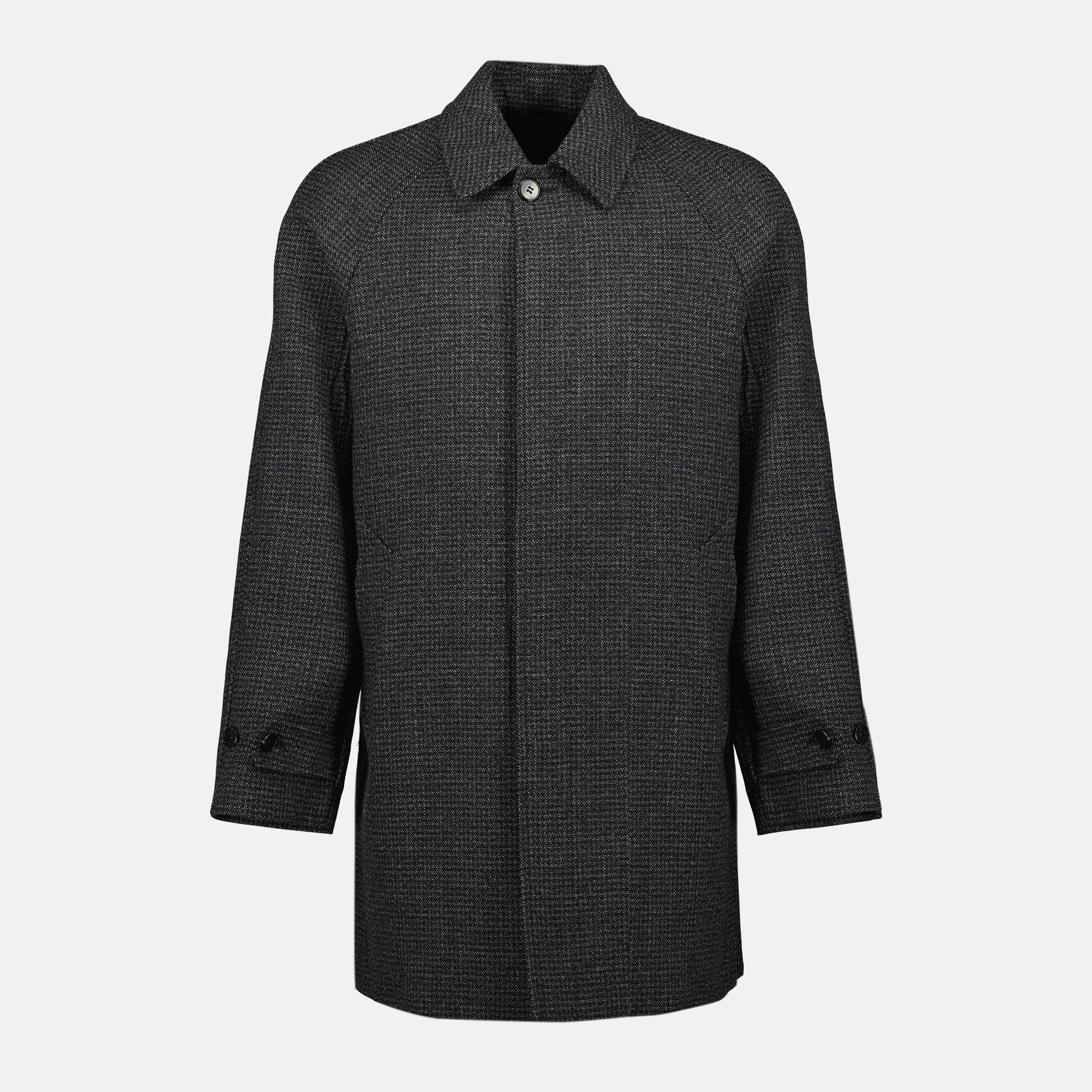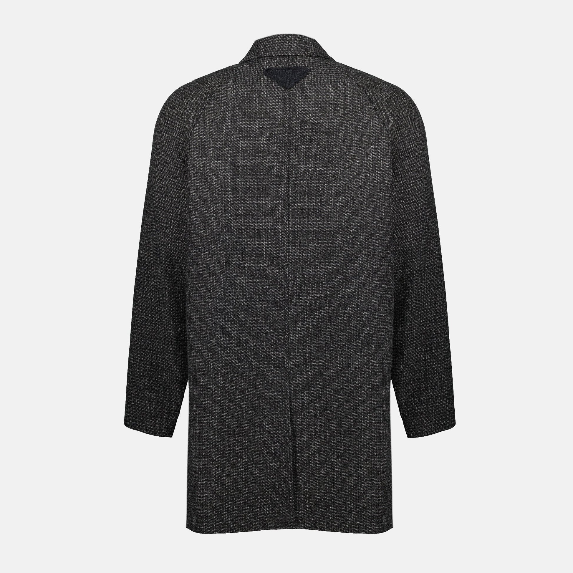 Wool coat with fine check pattern from Prada, designed for men. This model is part of the Autumn-Winter 2025 collection, combining classic elegance with modern details.