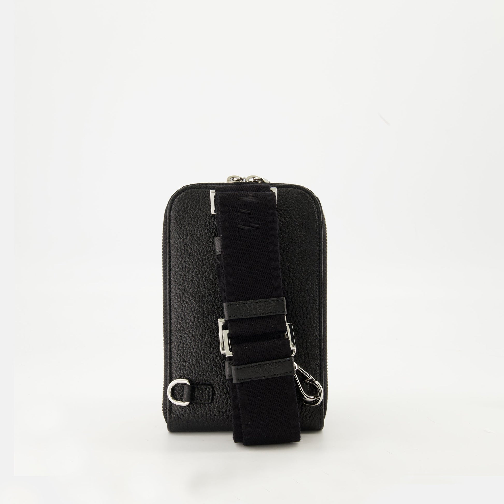 Mini shoulder bag in grained leather from Prada for women, from the Autumn-Winter 2025 collection. It is made of black calfskin leather with an adjustable nylon webbing strap.