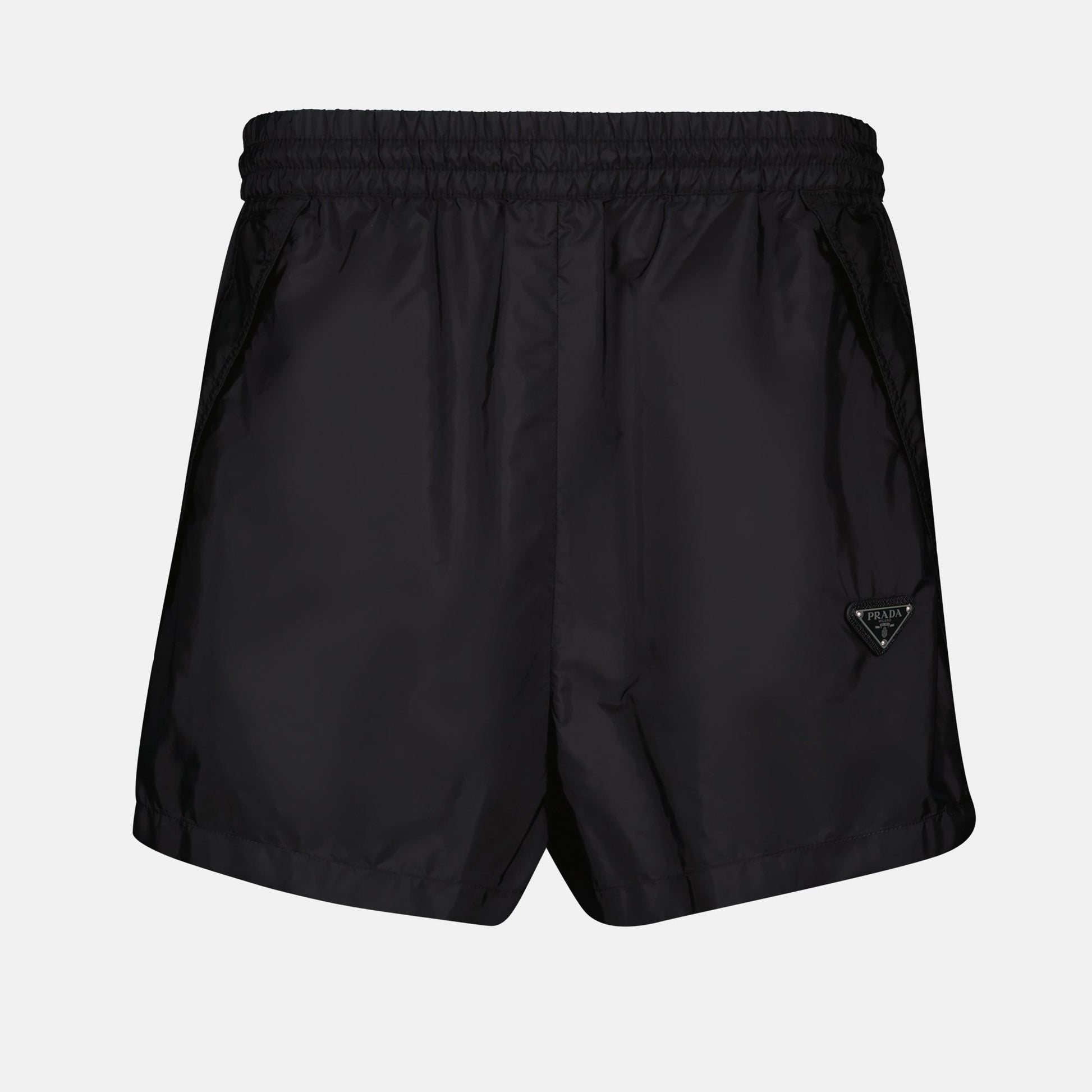 Re-Nylon shorts from the Prada Autumn-Winter 2024 collection for Women. Made from recycled nylon. Item in solid black color.