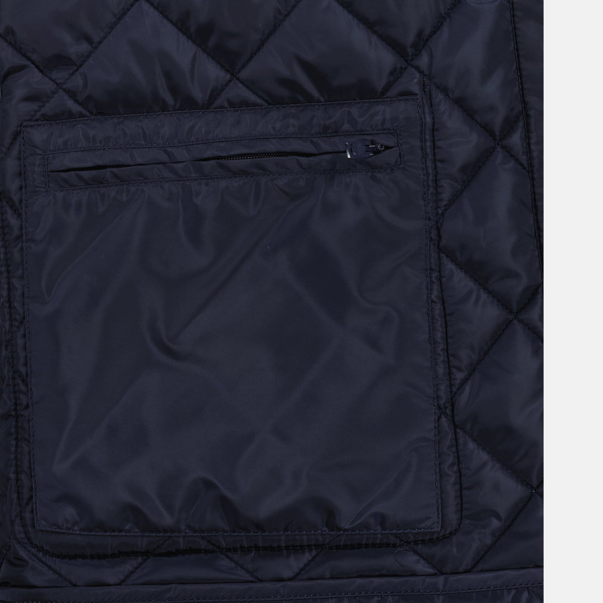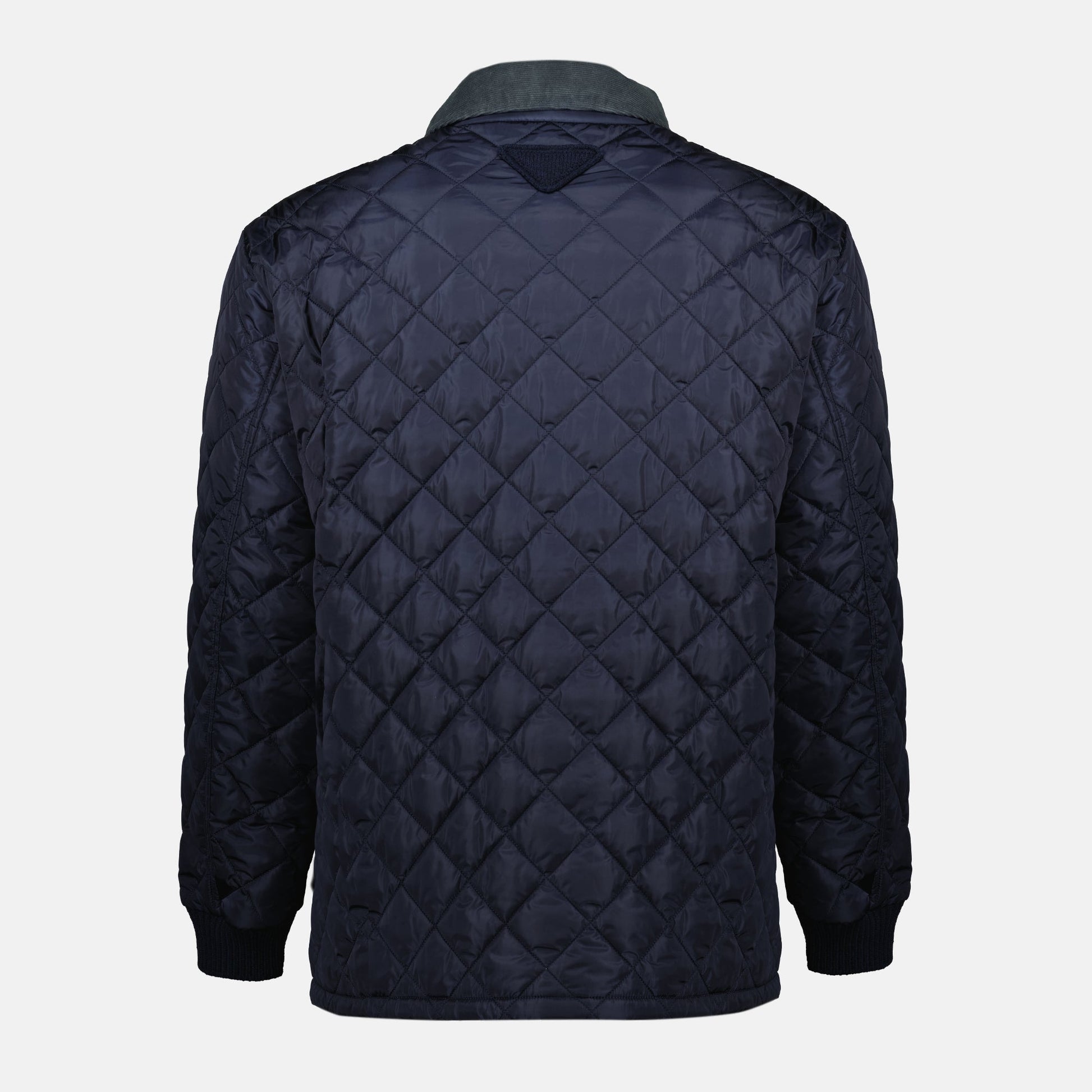 The blue quilted jacket from Prada, for men, features a straight cut and elegant details. Part of the Autumn-Winter 2025 collection, it combines style and comfort.