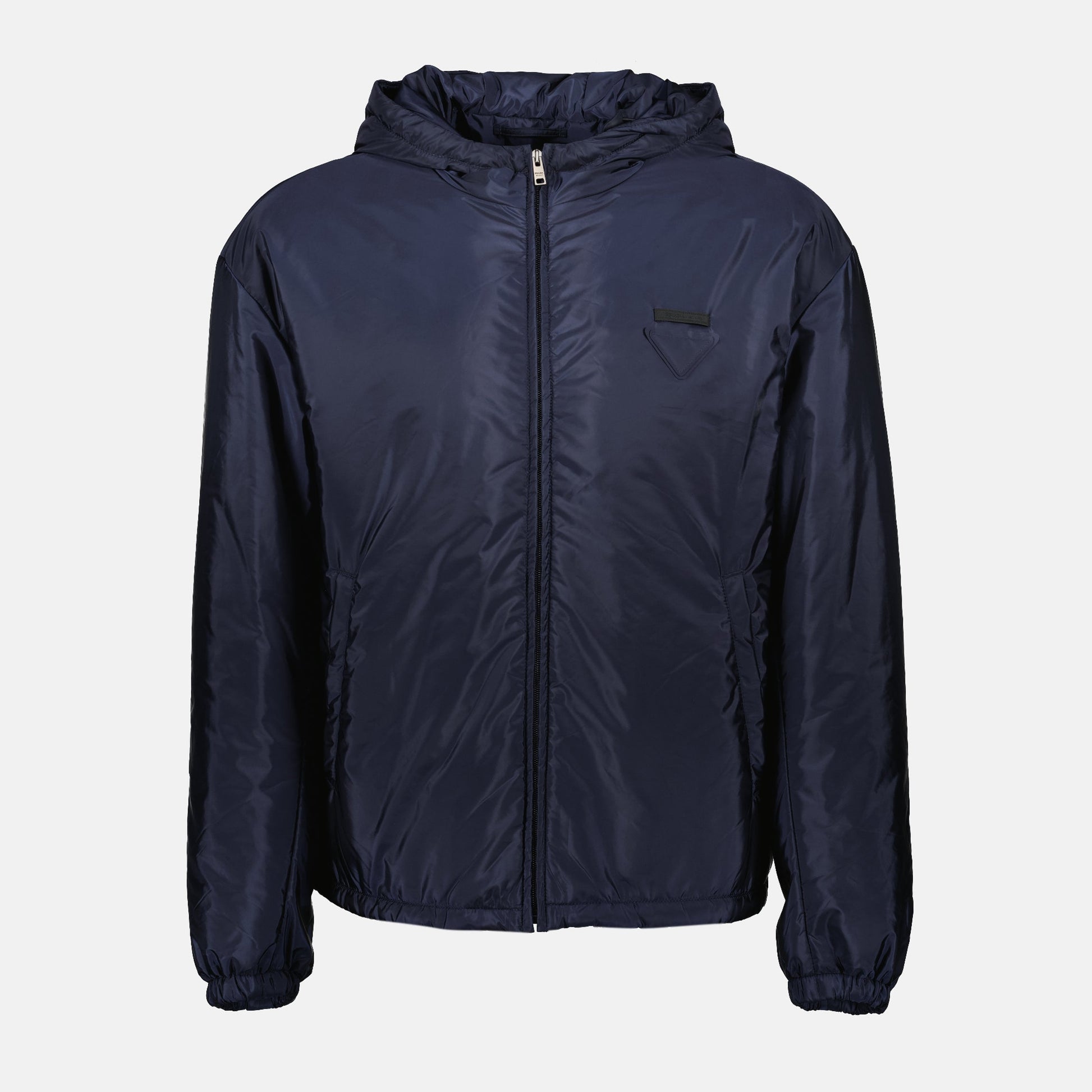 Zipped Re-nylon jacket from Prada for men, from the Autumn-Winter 2025 collection. Made from recycled nylon, it features a high collar and zipped side pockets.