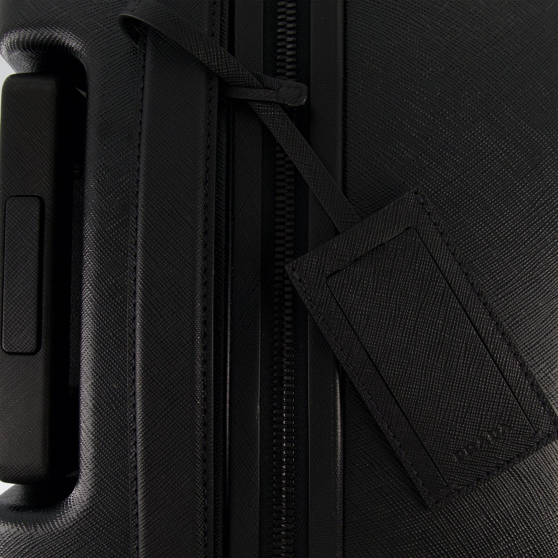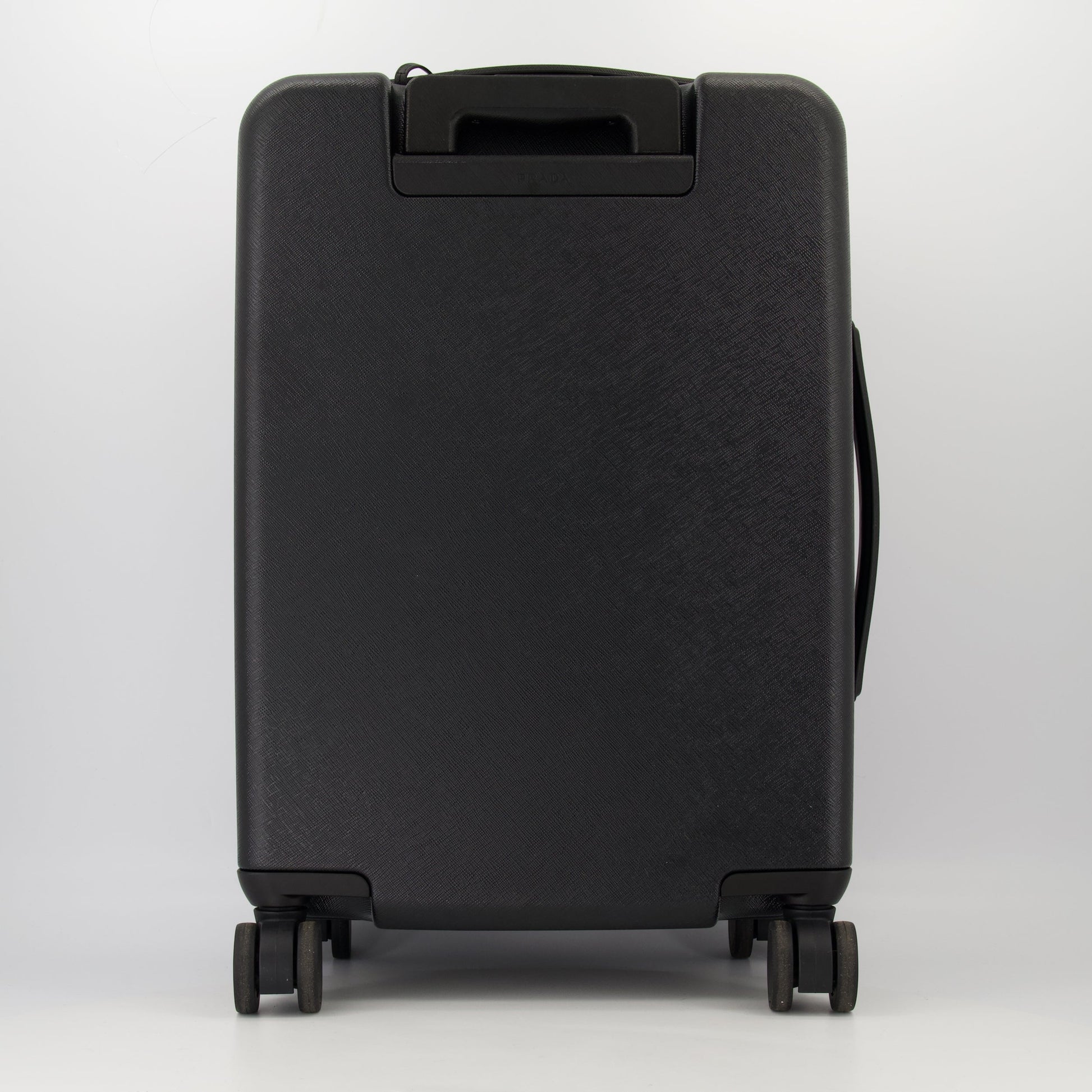 Wheeled suitcase in leather by Prada, designed for men, combines elegance and functionality. This piece from the Spring-Summer 2025 collection is ideal for cabin travel.