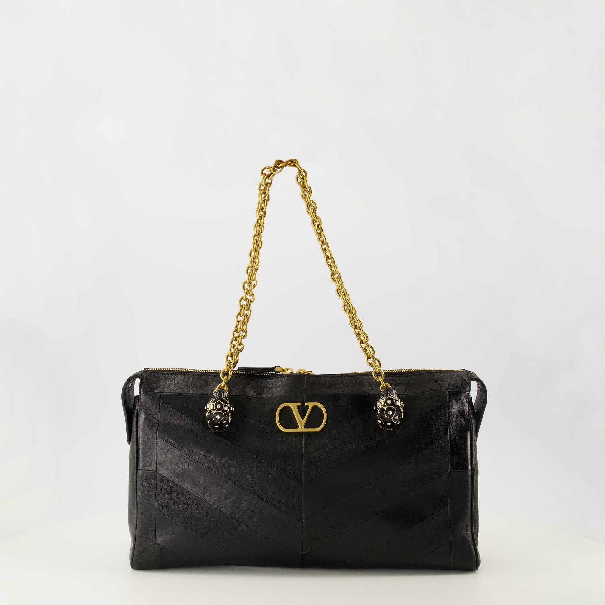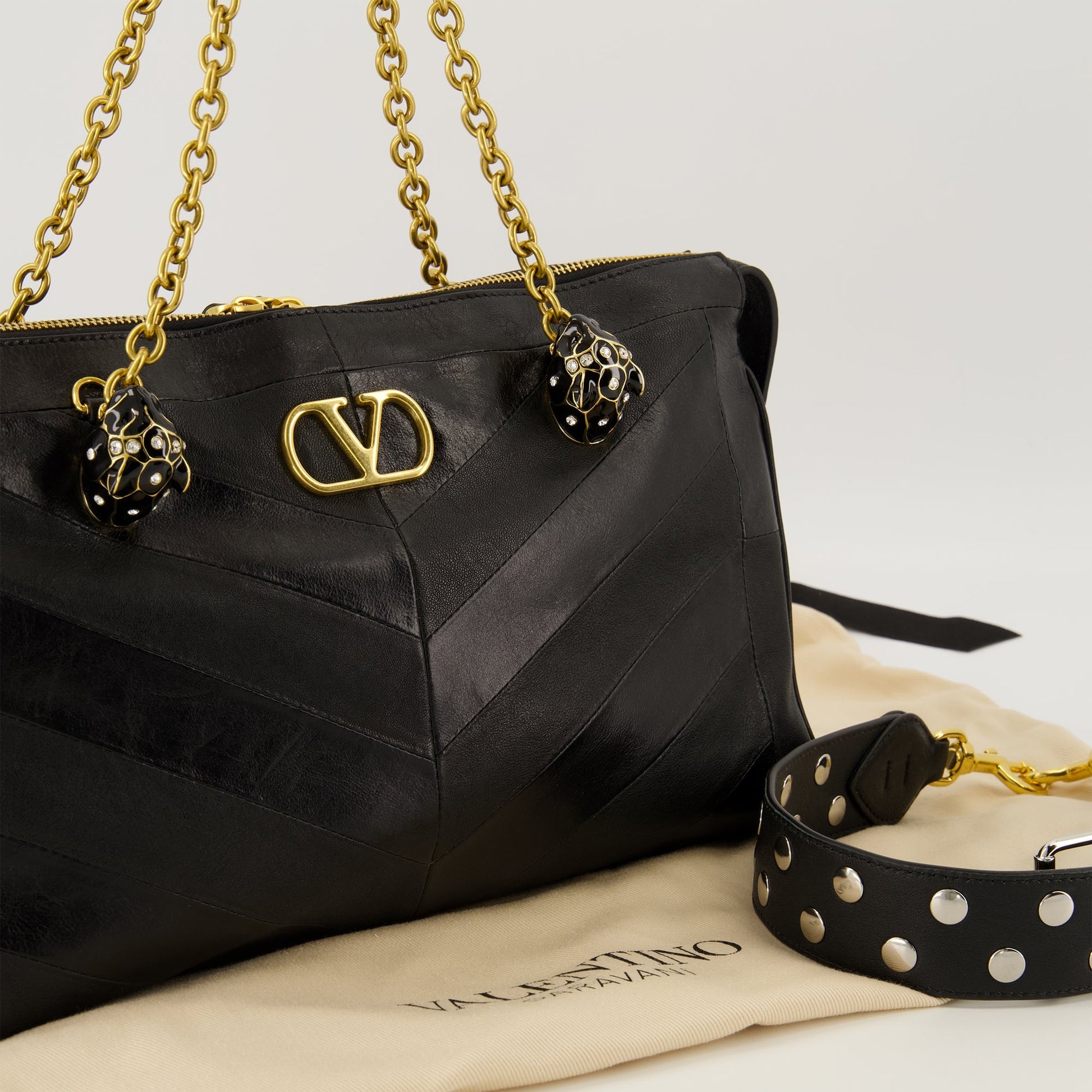 The Panthea black leather bag by Valentino Garavani is a women's accessory. It is part of the Autumn-Winter 2025 collection.