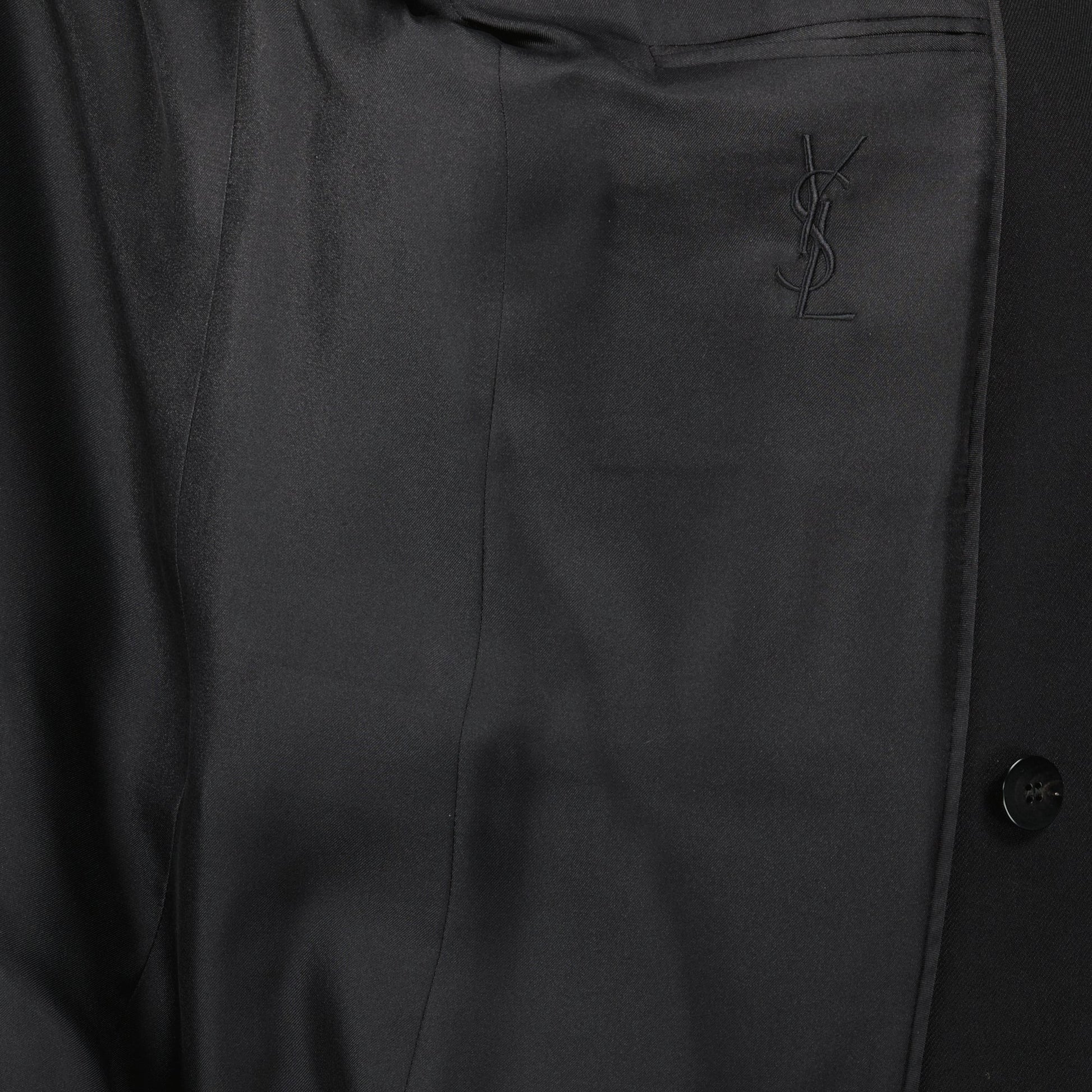 The black Cassandre blazer from Saint Laurent is an elegant piece for women, made from wool gabardine with a silk lining. This model is part of the Fall-Winter 2025 collection.