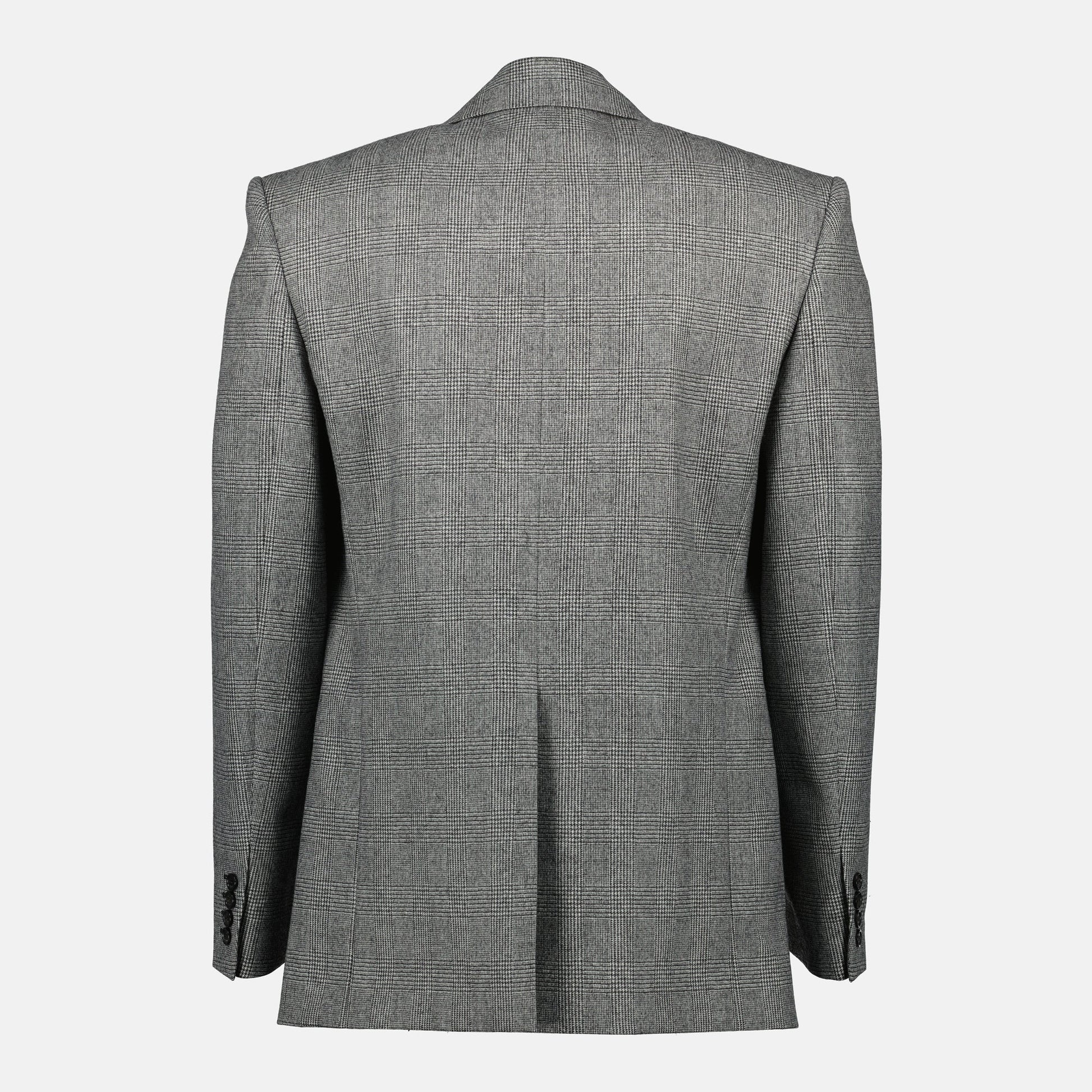 The gray flannel wool blazer from Saint Laurent, designed for men, features an elegant straight cut. This piece is part of the Autumn-Winter 2025 collection.