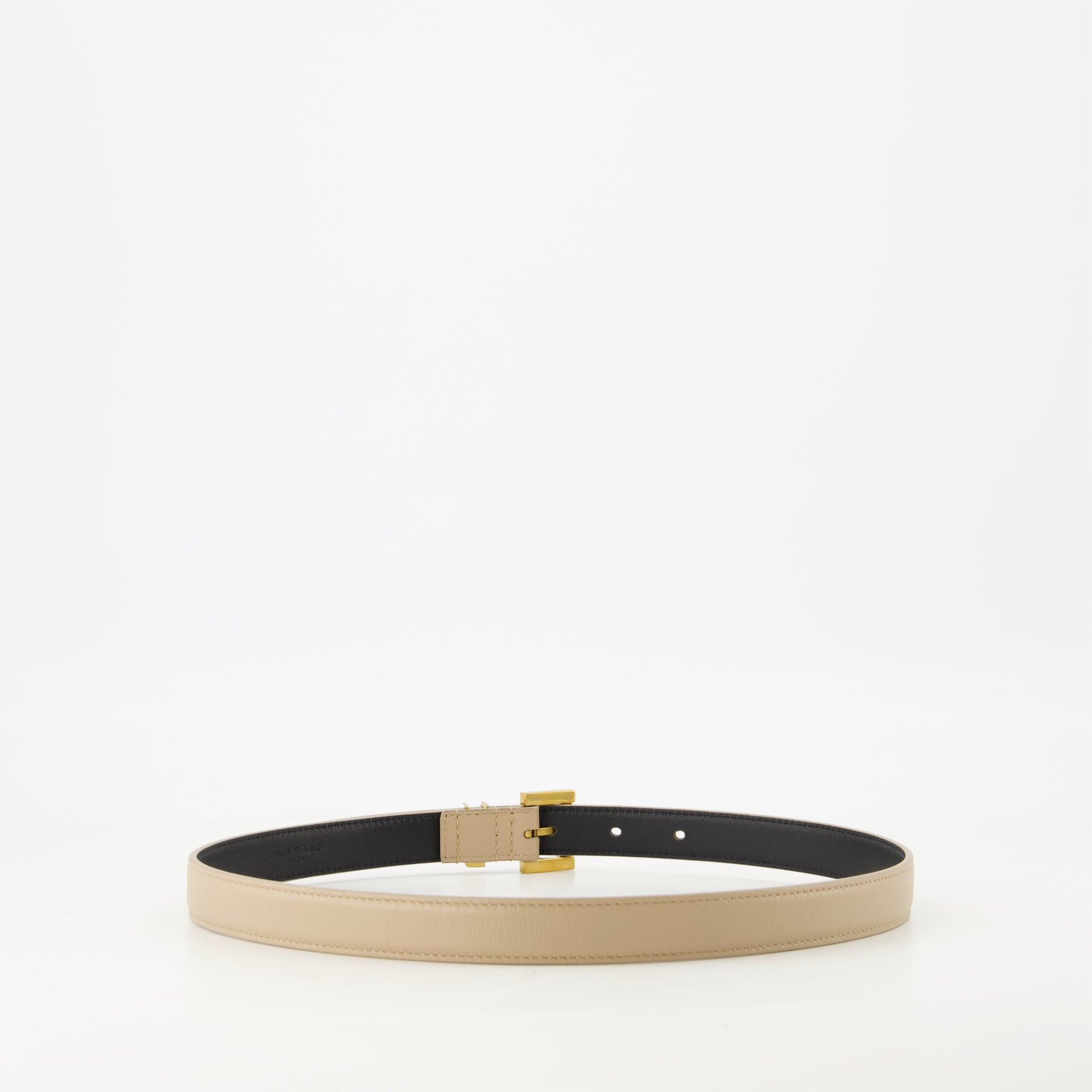 The Cassandre thin belt by YSL in beige leather from Saint Laurent is an elegant accessory for women. It is part of the Fall-Winter 2024 collection and features a refined and adjustable design.