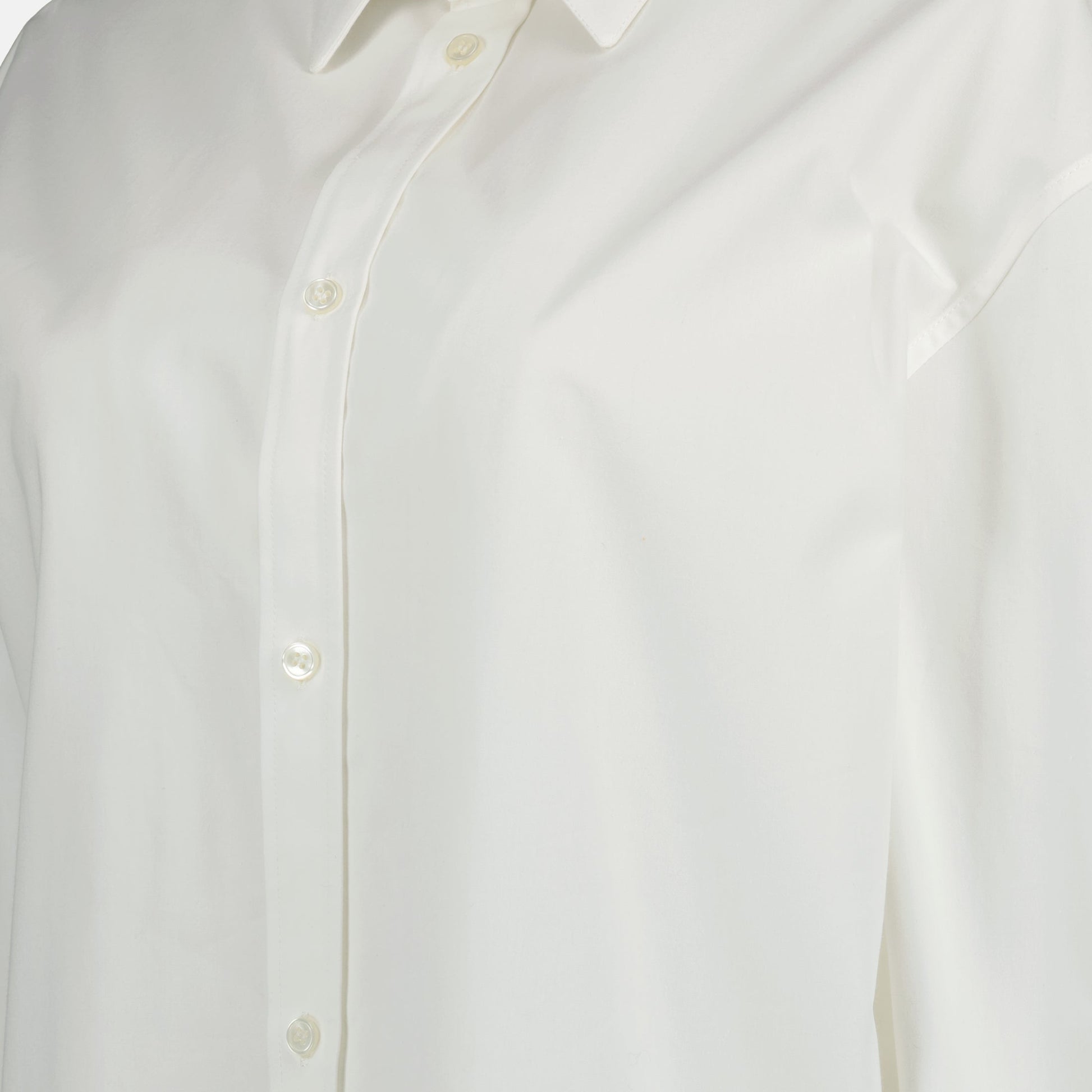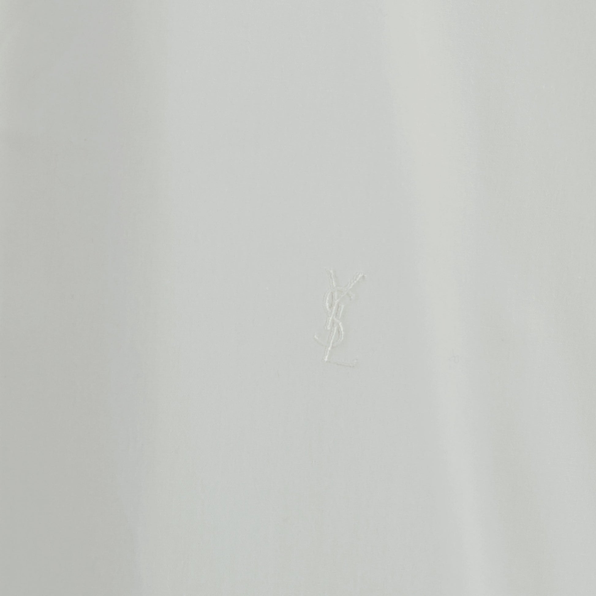 The Cassandre shirt in poplin by Saint Laurent is a feminine piece from the Spring-Summer 2025 collection. It features an oversized cut and an embroidered Cassandre logo.