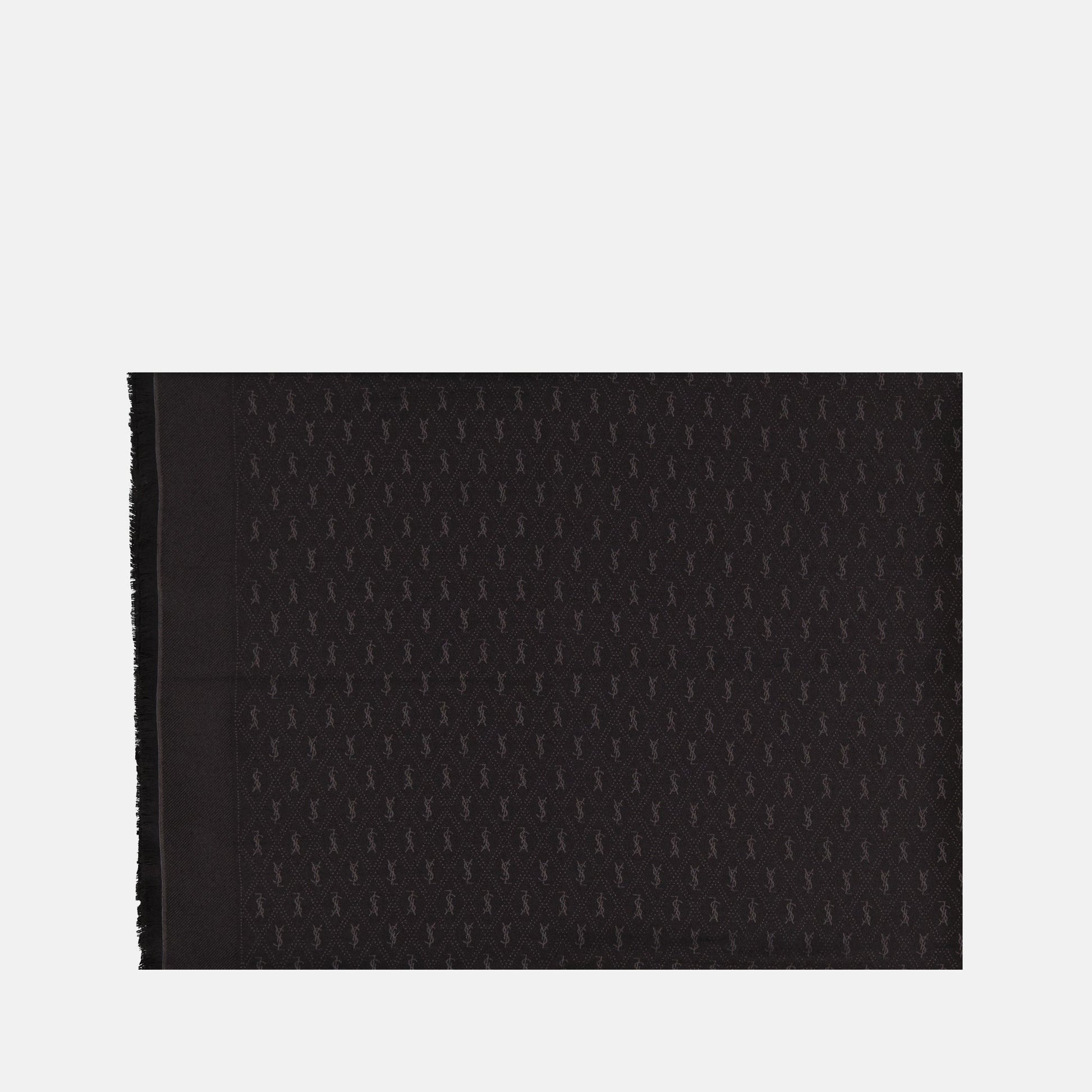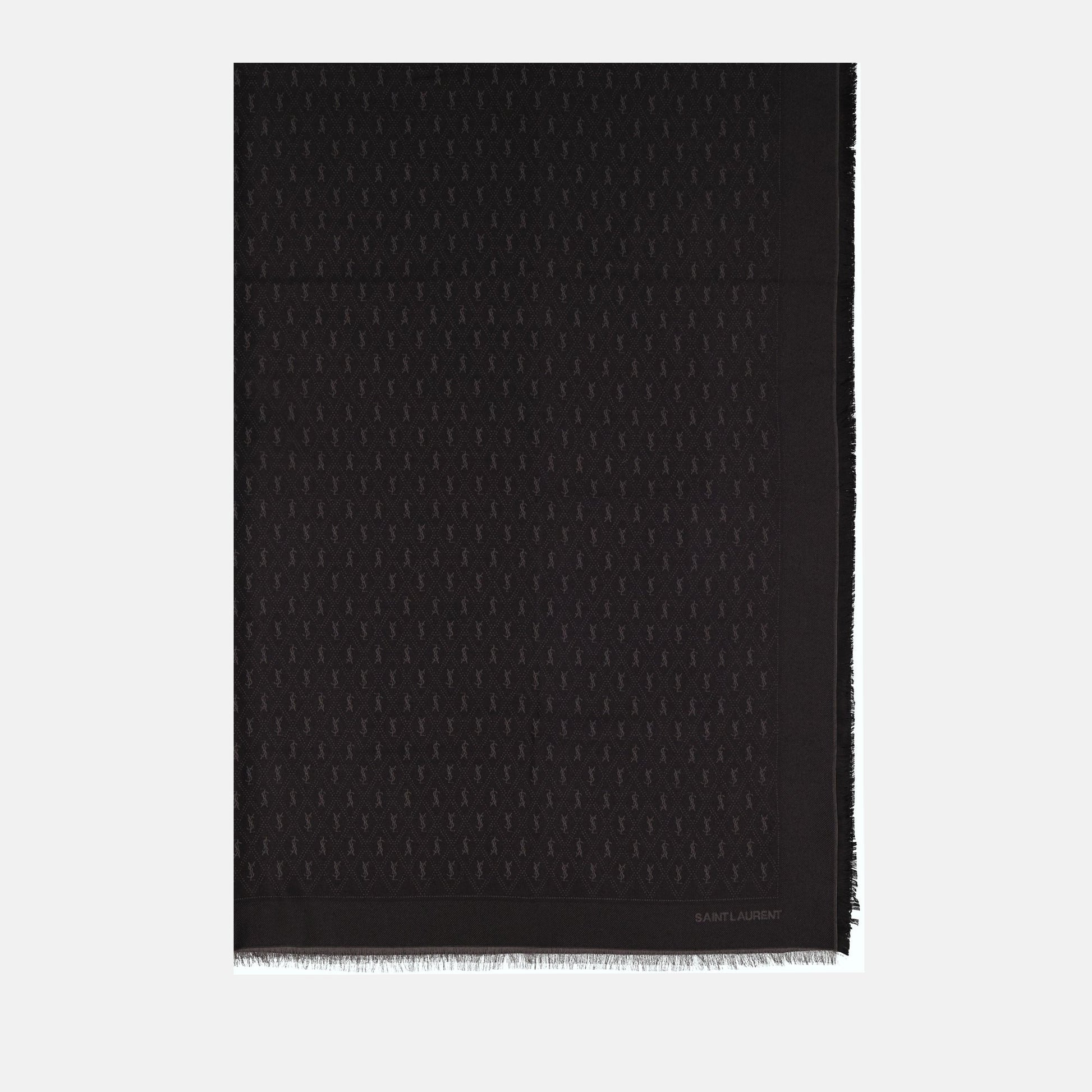 Écharpe Cassandre Saint Laurent collection Automne-Hiver 2024 pour Homme. Réalisé en laine et soie. Article Logo monogrammé sur l'ensemble..