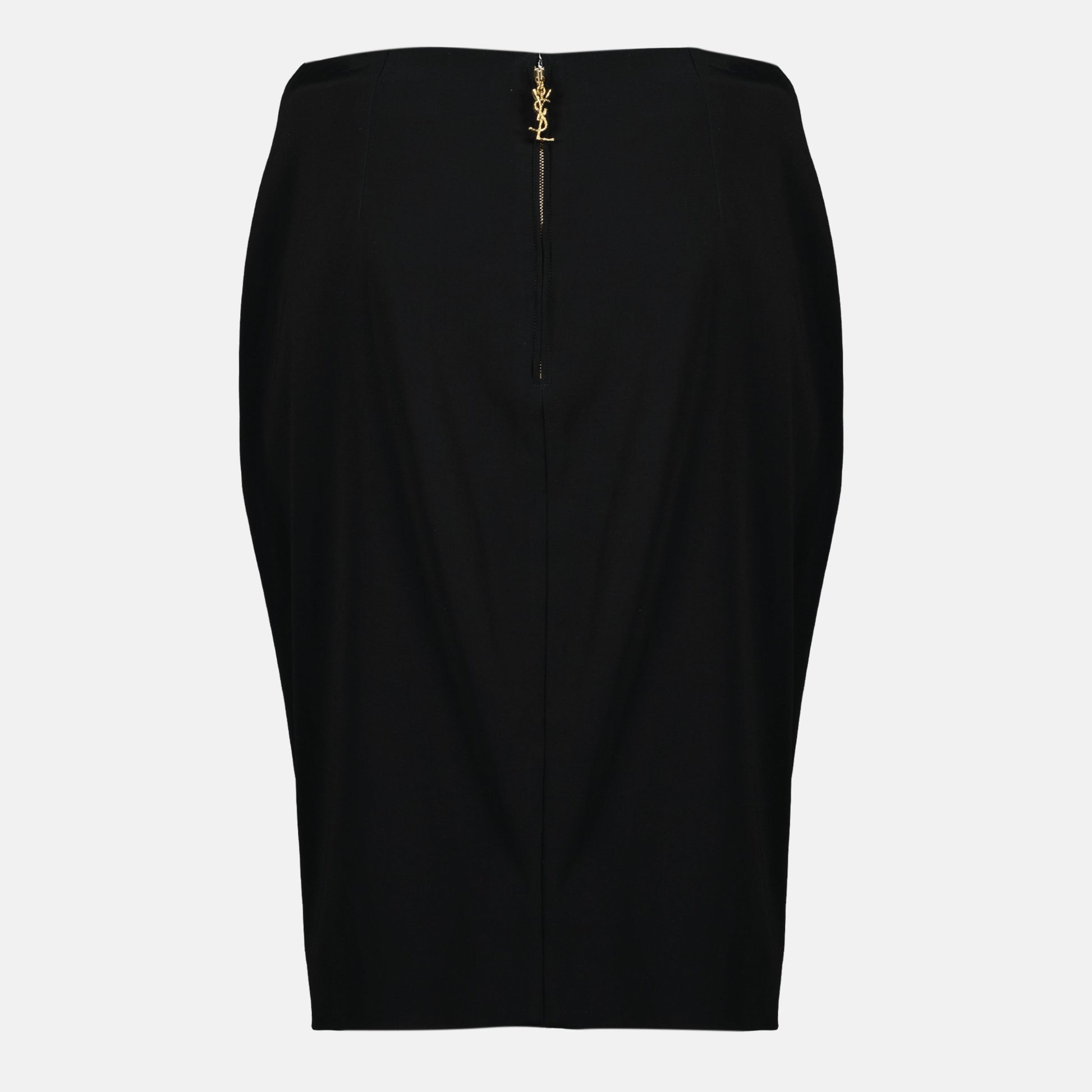 The black Cassandre pencil skirt from Saint Laurent is an elegant women's garment. Part of the Fall-Winter 2025 collection, it combines style and comfort thanks to its viscose material.