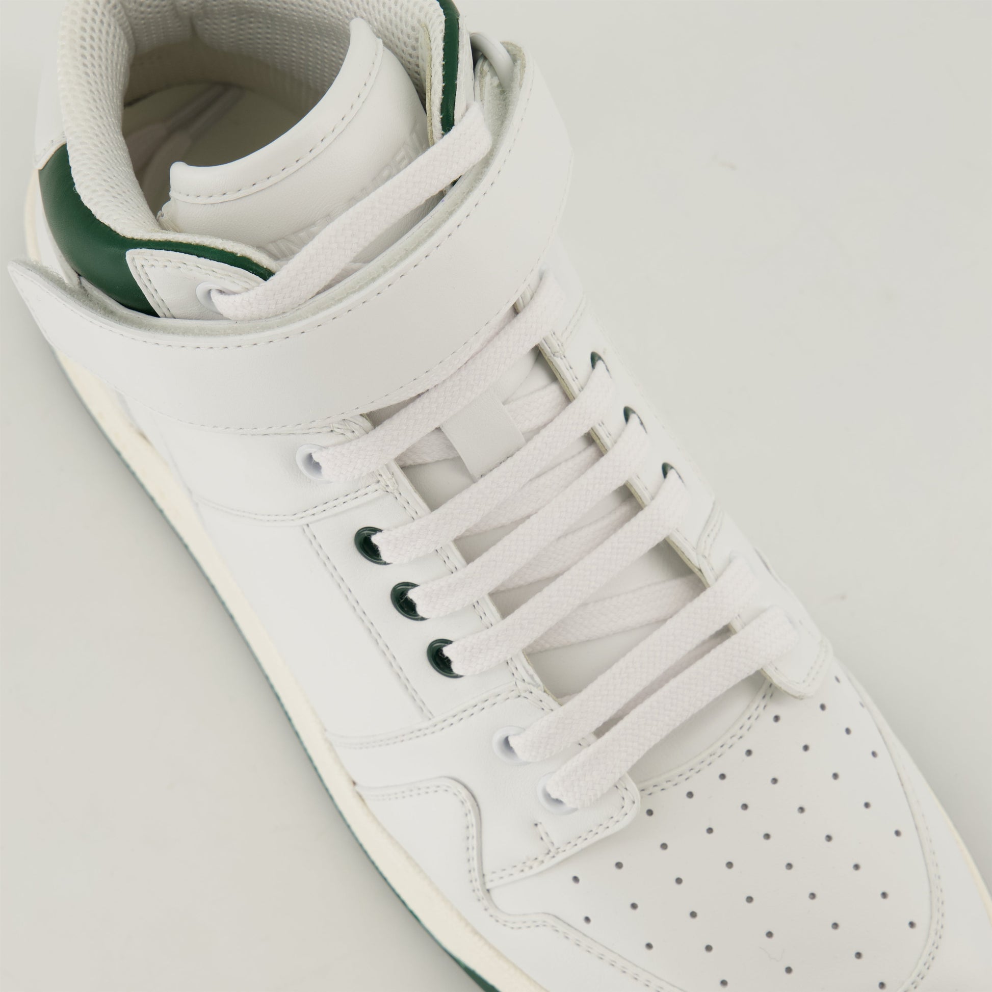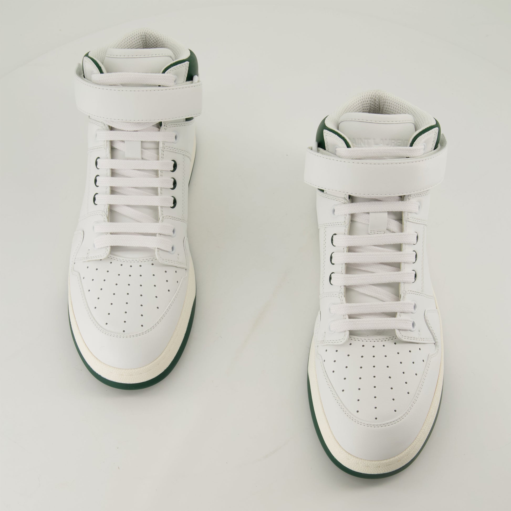The Lax high-top sneakers in leather from Saint Laurent for men feature a white and green two-tone design. This piece is part of the Autumn-Winter 2024 collection.
