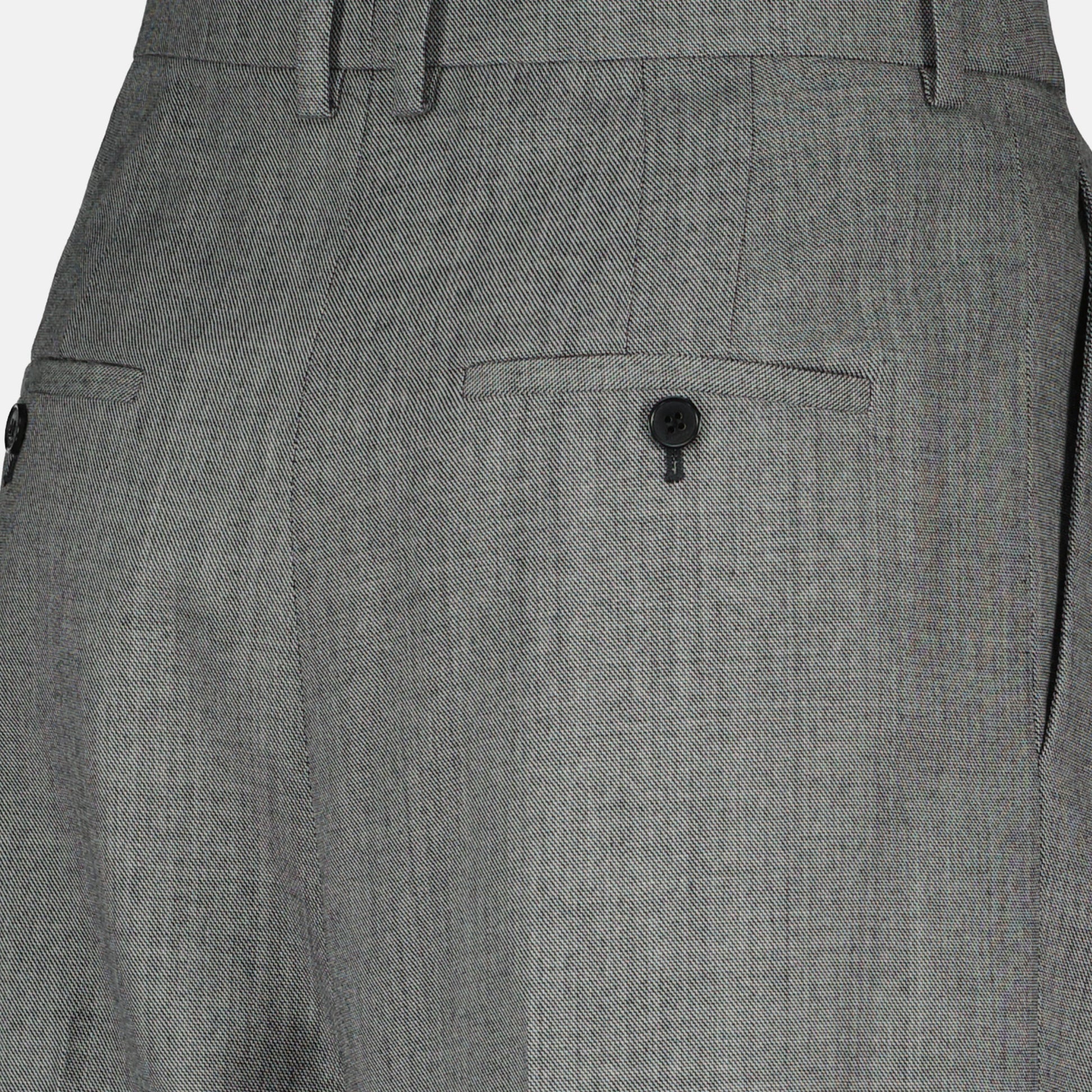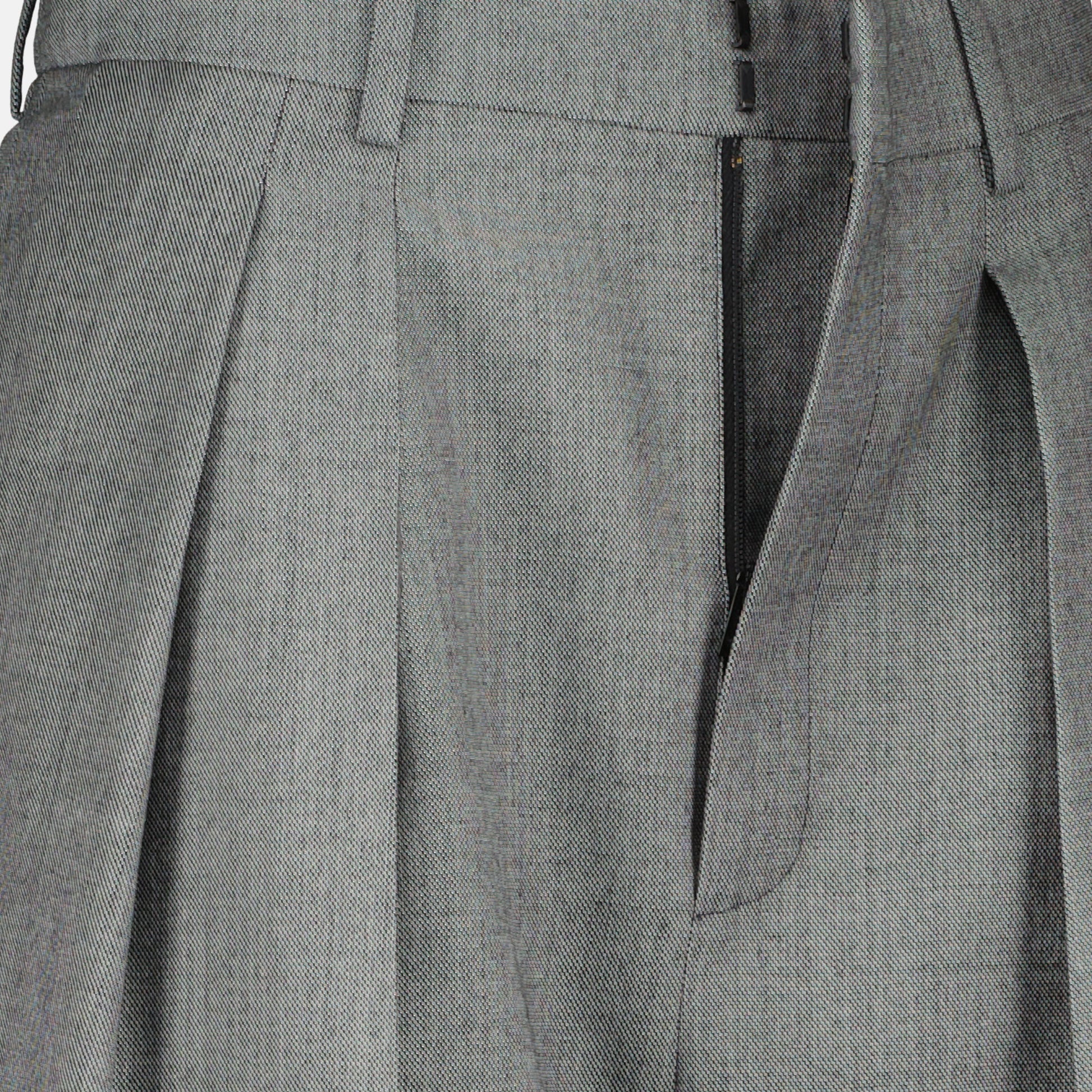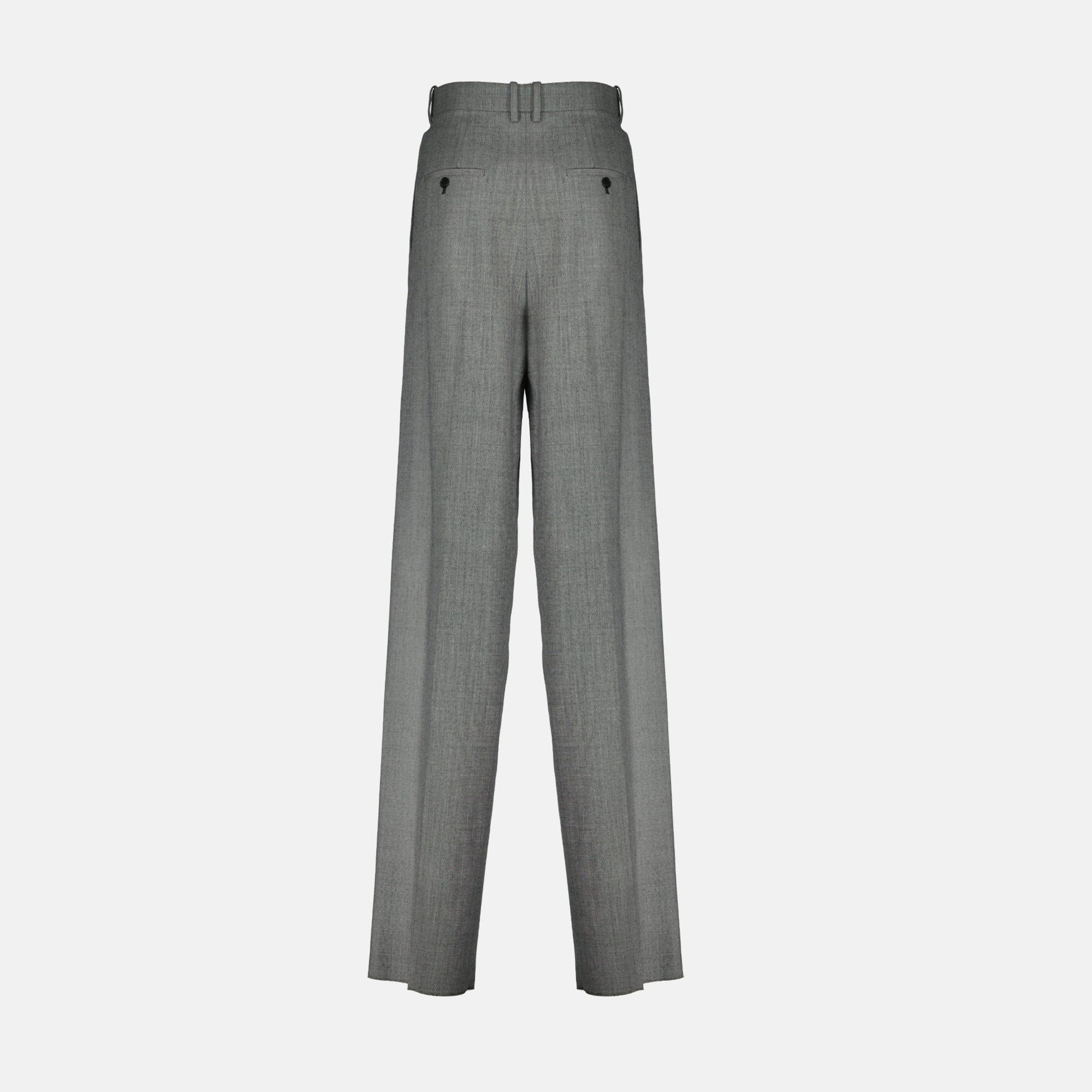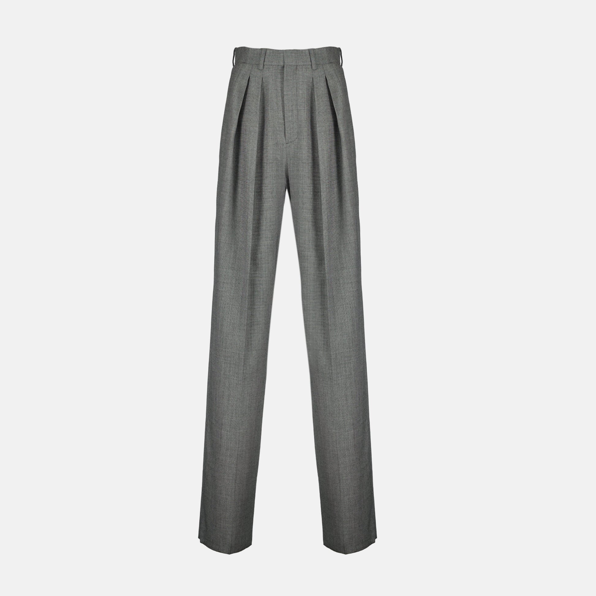 Gray wool pants from Saint Laurent for women. This model is part of the Spring-Summer 2025 collection and features a wide cut with refined details.