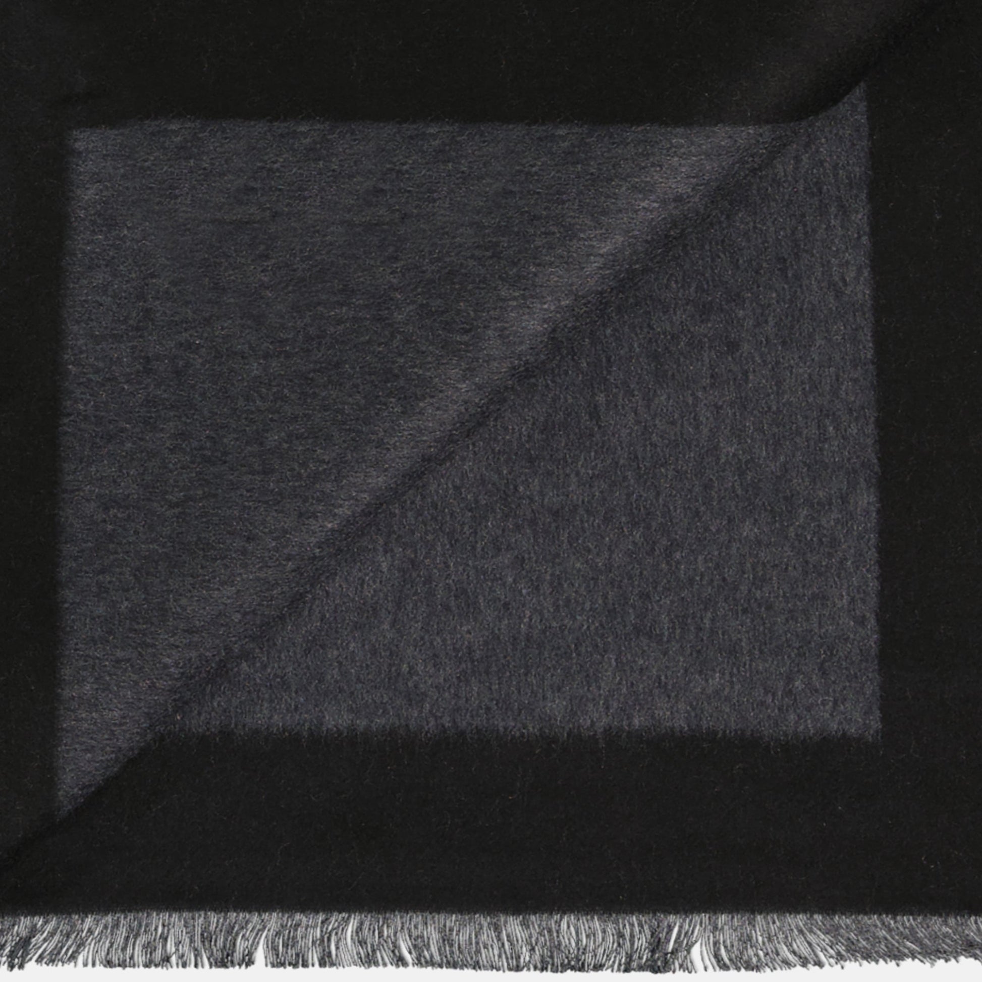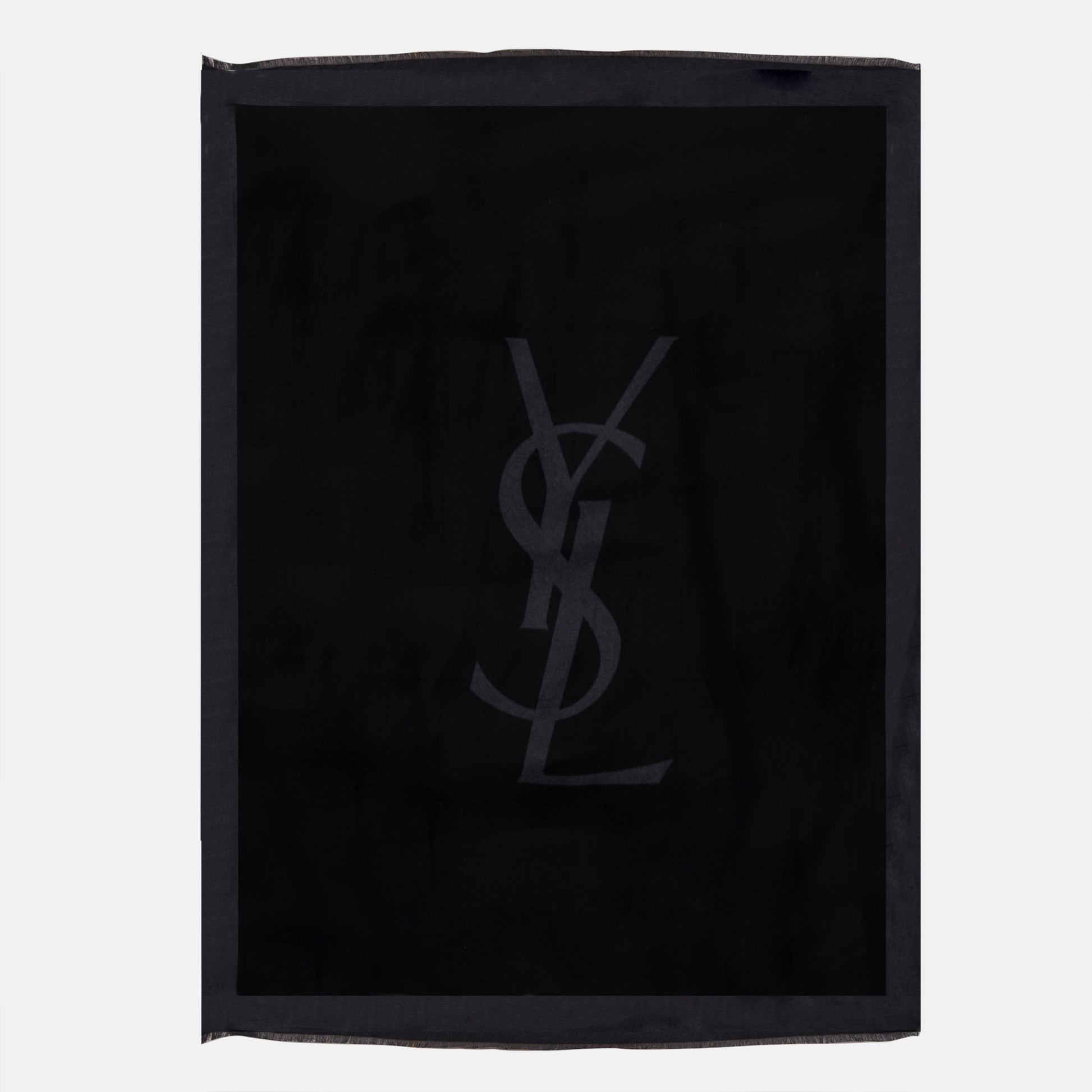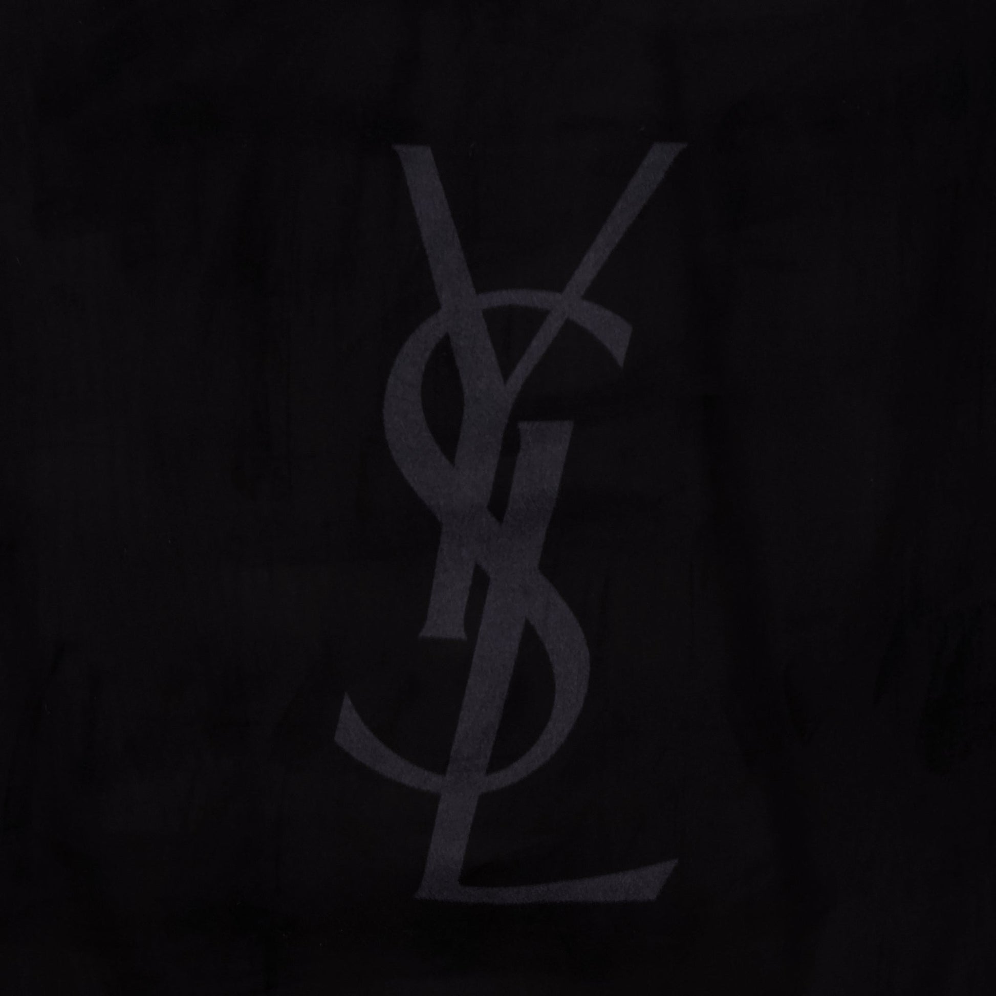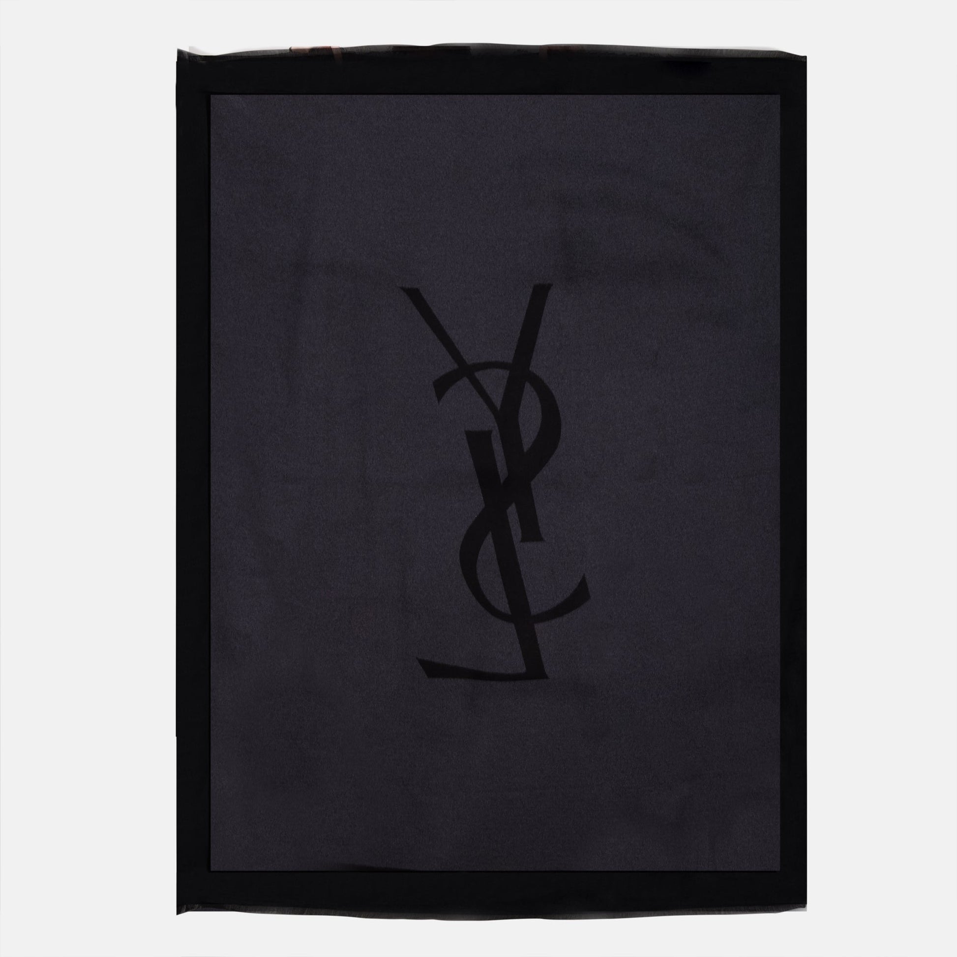 The black Plaid Cassandre scarf from Saint Laurent is a silk accessory for men. It is part of the Autumn-Winter 2025 collection, featuring an embroidered logo and fringed edges.