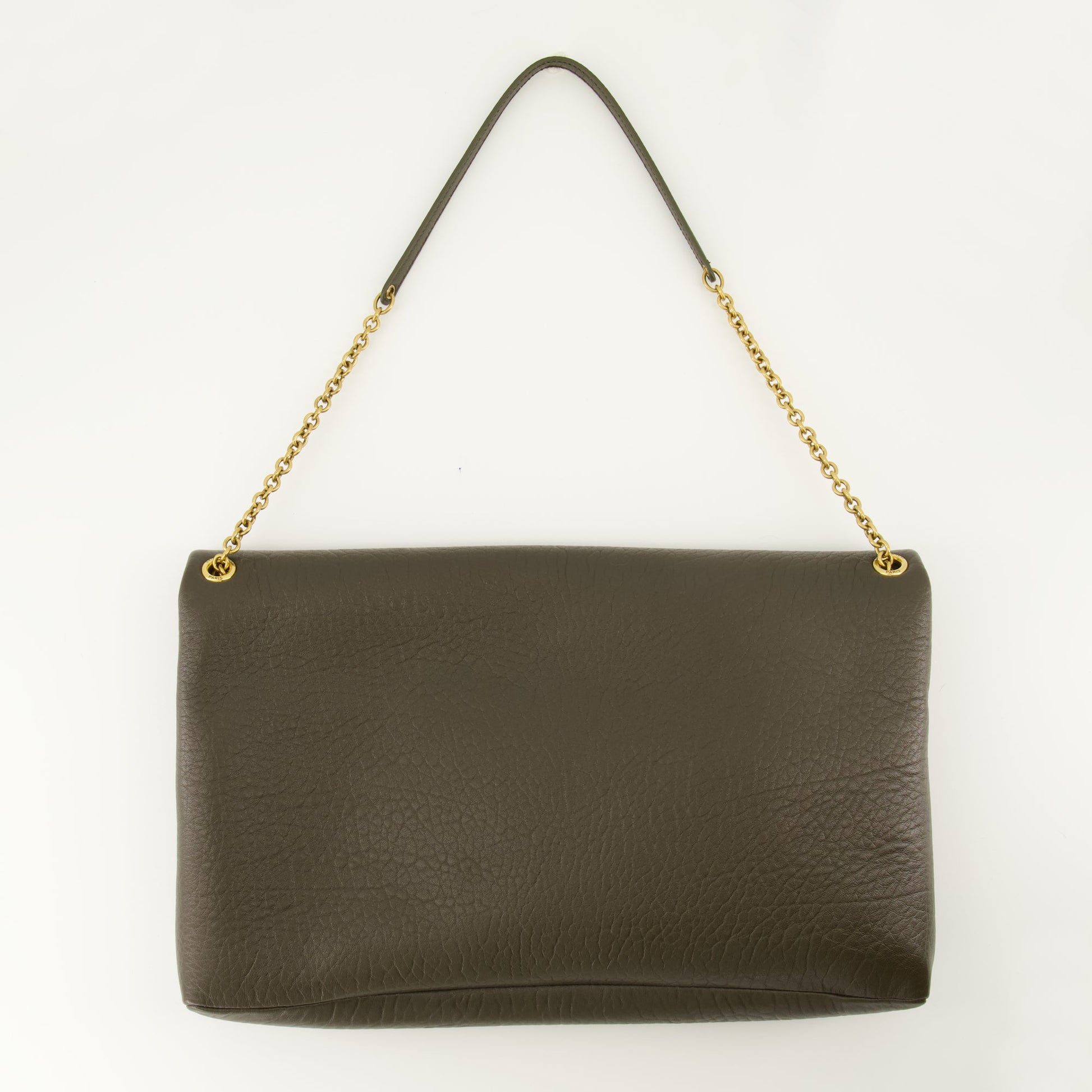 The khaki Cassandre XXL clutch from Saint Laurent, crafted from lambskin leather, is an elegant piece for women from the Autumn-Winter 2025 collection. It combines sophistication and functionality with its magnetic flap and shoulder strap.