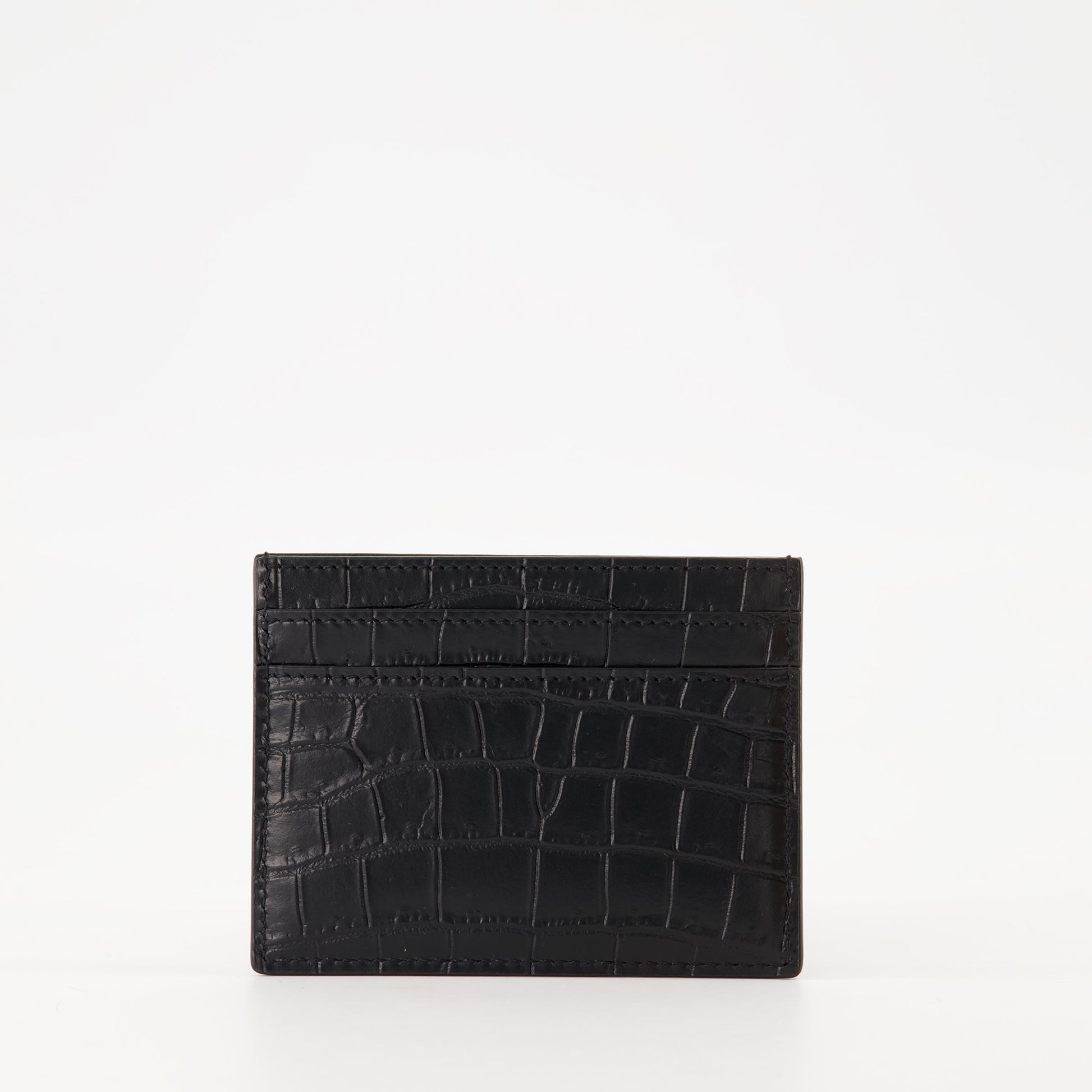 The Saint Laurent Paris card holder in croc leather is an elegant accessory for men. Part of the Autumn-Winter 2025 collection, it features a square design and five card slots.