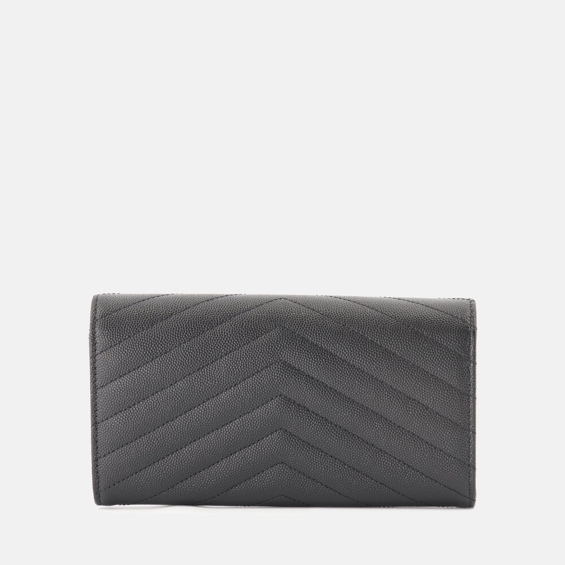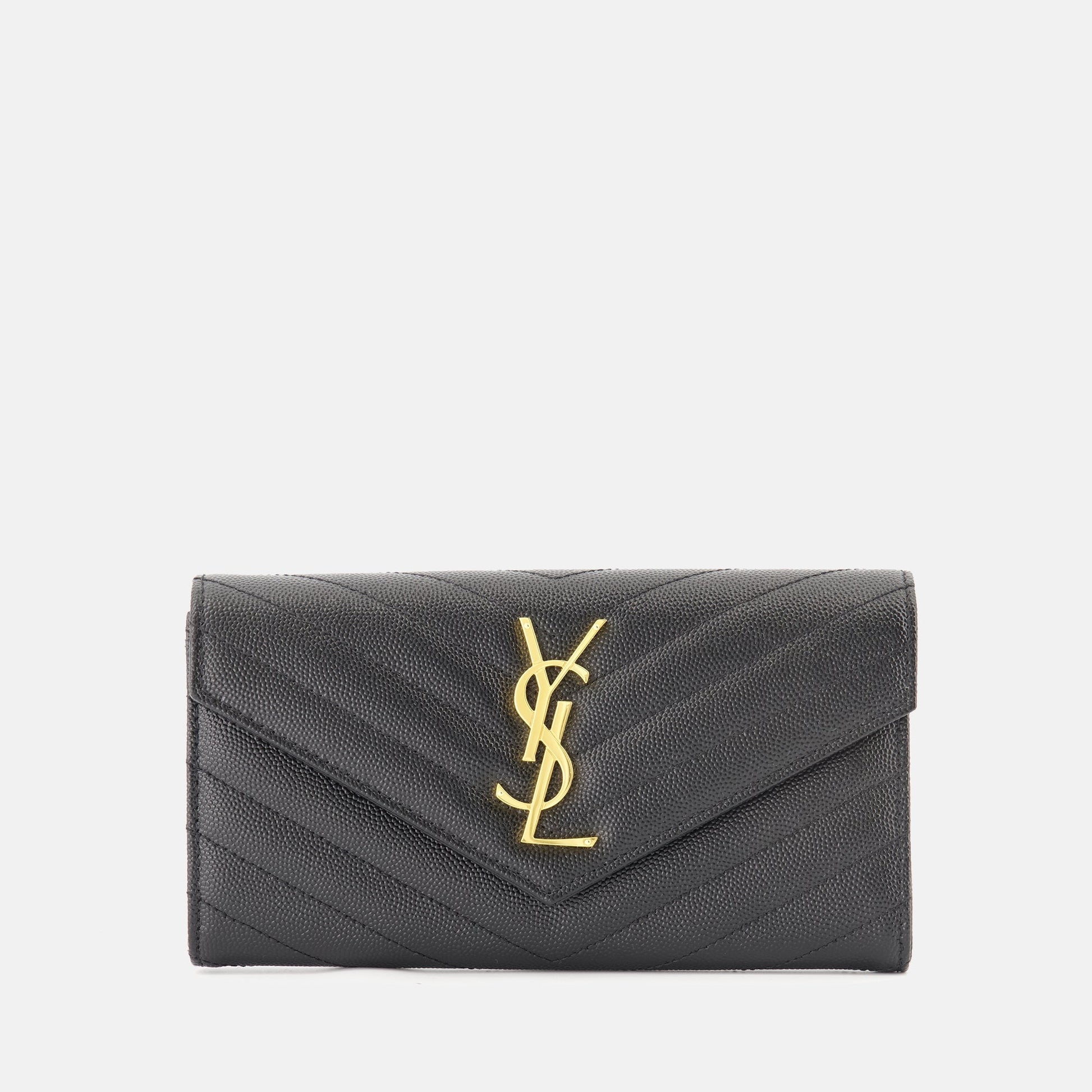 Cassandre black wallet from Saint Laurent for women, made of grained leather with golden brass details. This model is part of the Autumn-Winter 2024 collection.