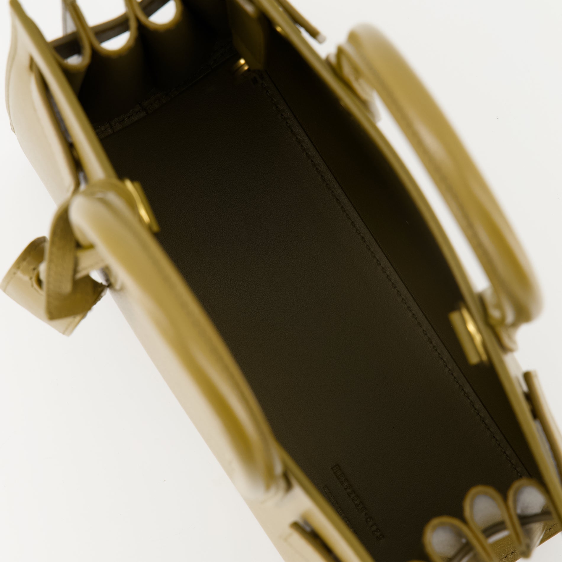 Khaki nano day bag from Saint Laurent for women. This piece is part of the Spring-Summer 2025 collection and is made of calfskin leather with golden brass finishes.