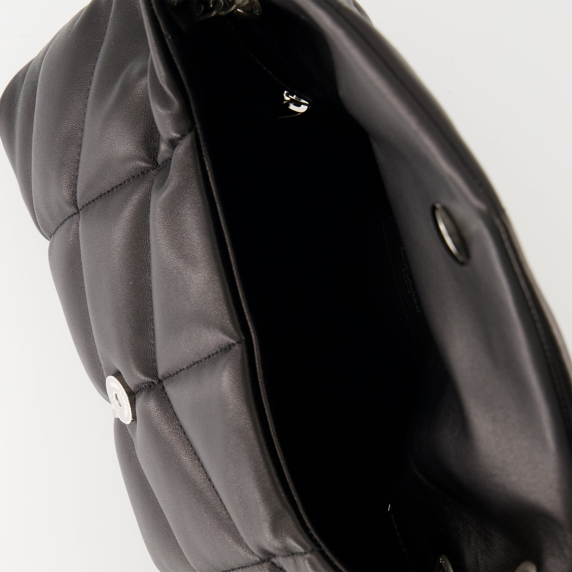 The black Peffer small bag from Saint Laurent is an elegant accessory for women. It is part of the Spring-Summer 2025 collection, crafted from lambskin with refined details.