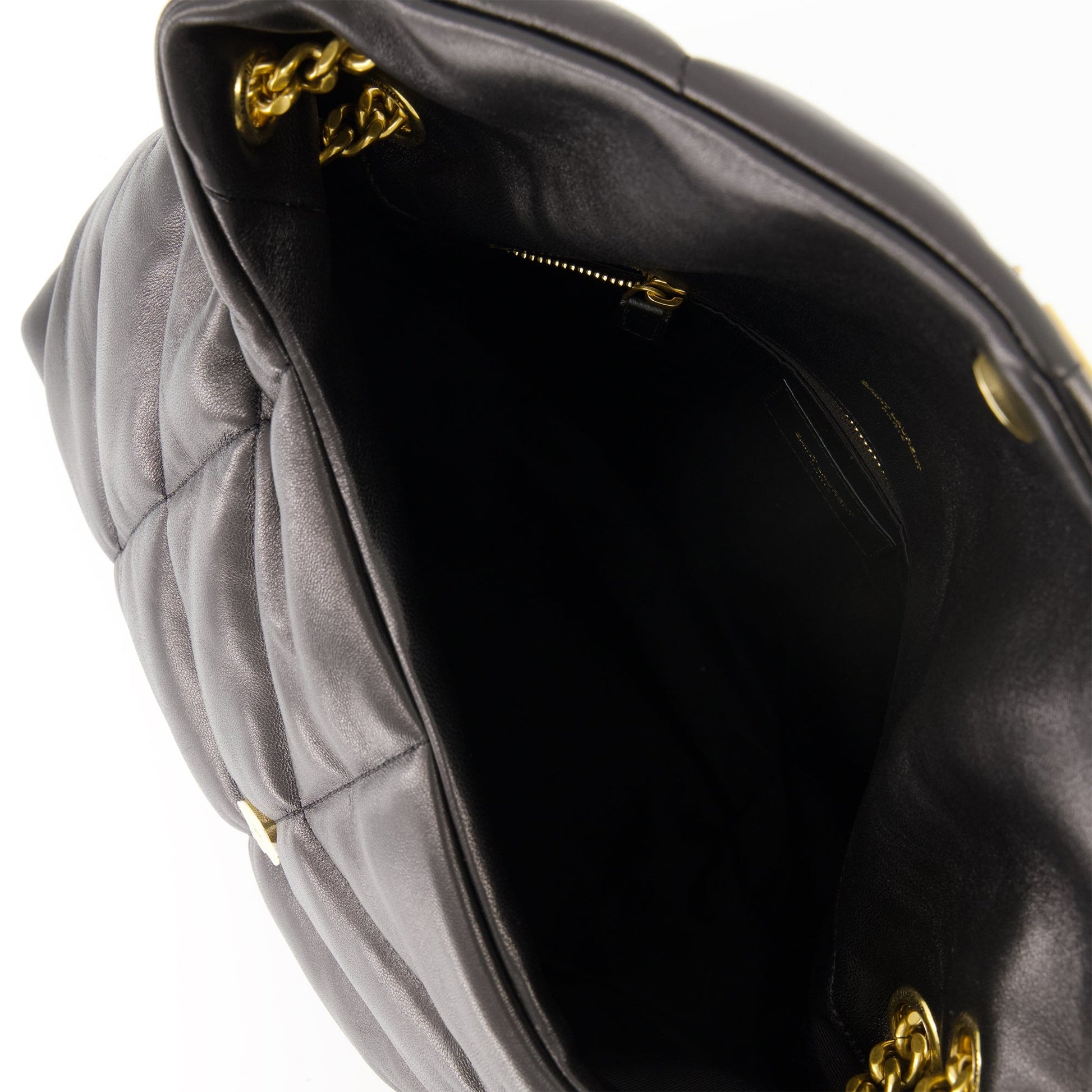 Medium black Puffer bag from Saint Laurent, designed for women. This model is part of the Spring-Summer 2025 collection and is made from lambskin leather with a quilted design.