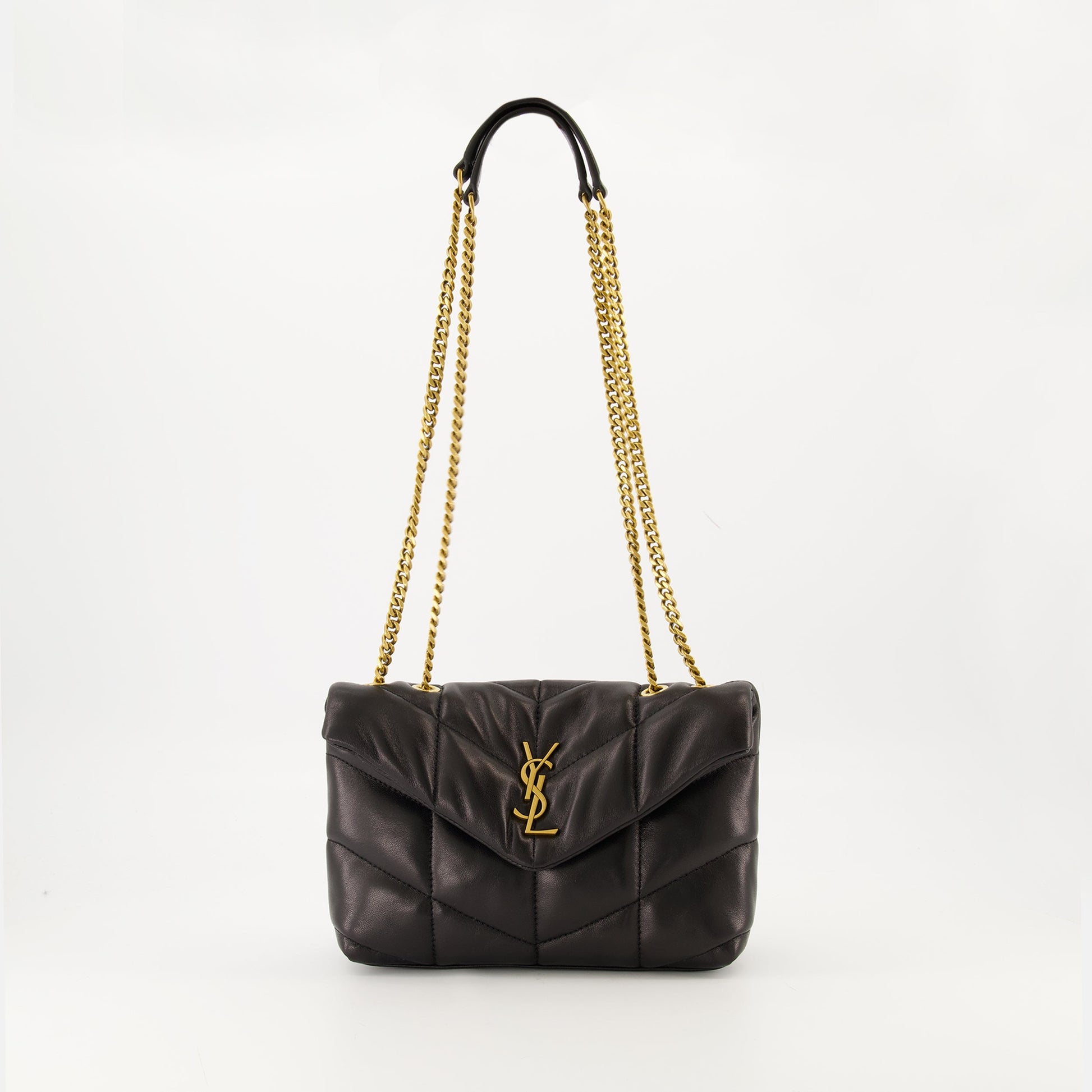 The black and gold Puffer Toy Bag from Saint Laurent is an elegant accessory for women. Made from lambskin, it is part of the Autumn-Winter 2025 collection.