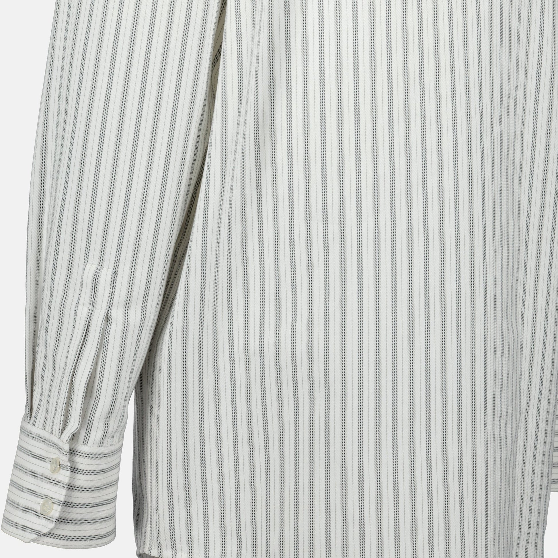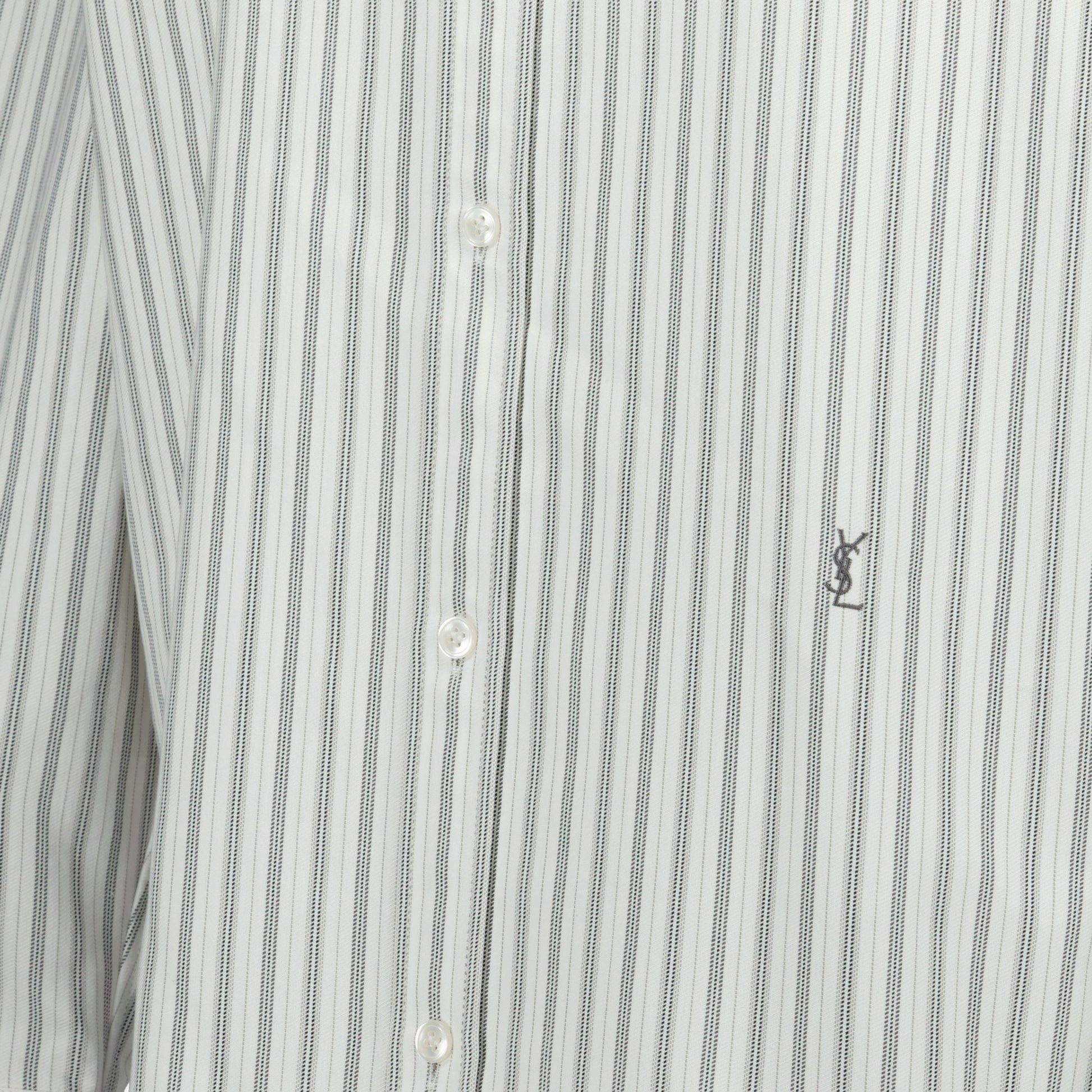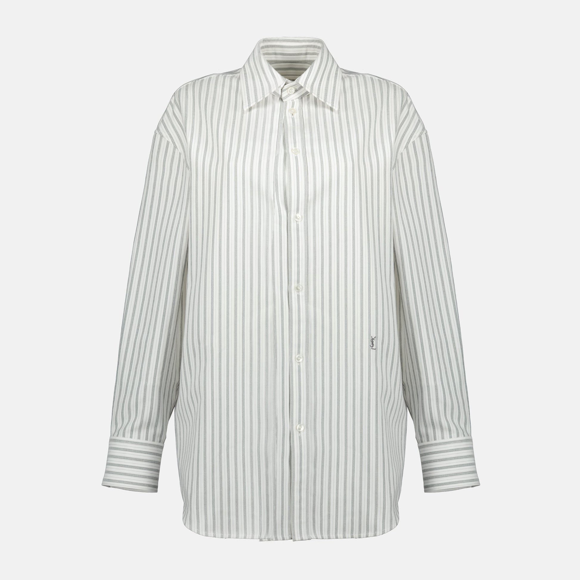 Black and white striped shirt from Saint Laurent for women. This piece is part of the Spring-Summer 2025 collection and is made of cotton with meticulous details.