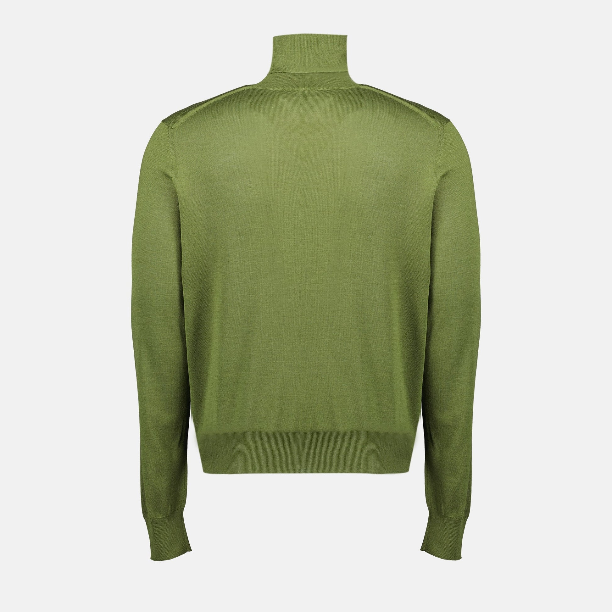 The green turtleneck sweater from Saint Laurent is a men's garment from the Autumn-Winter 2025 collection. Made of wool and cashmere, it offers comfort and elegance.