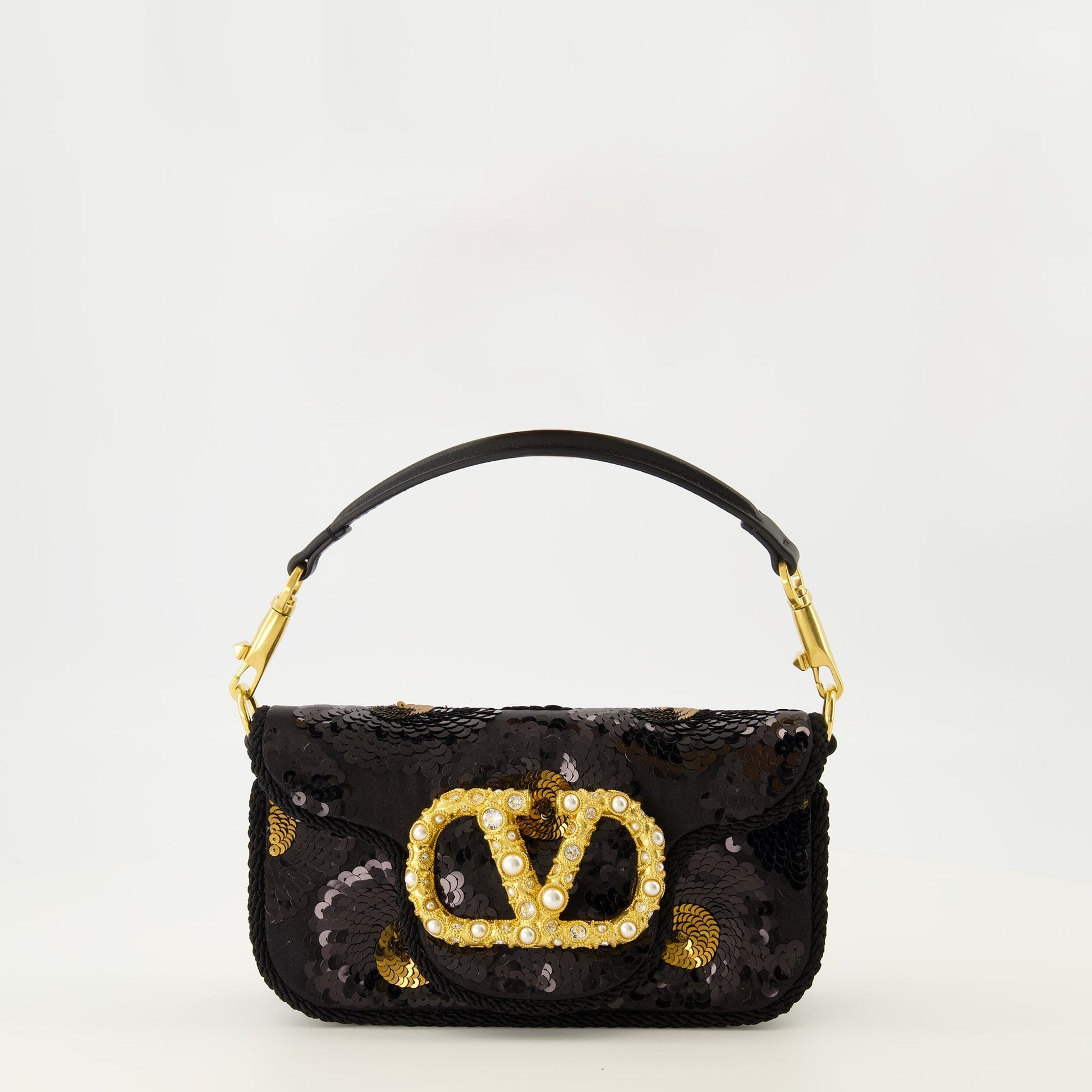 The Small Locò Black Sequin Bag by Valentino Garavani is a women's accessory. It is part of the Autumn-Winter 2025 collection.