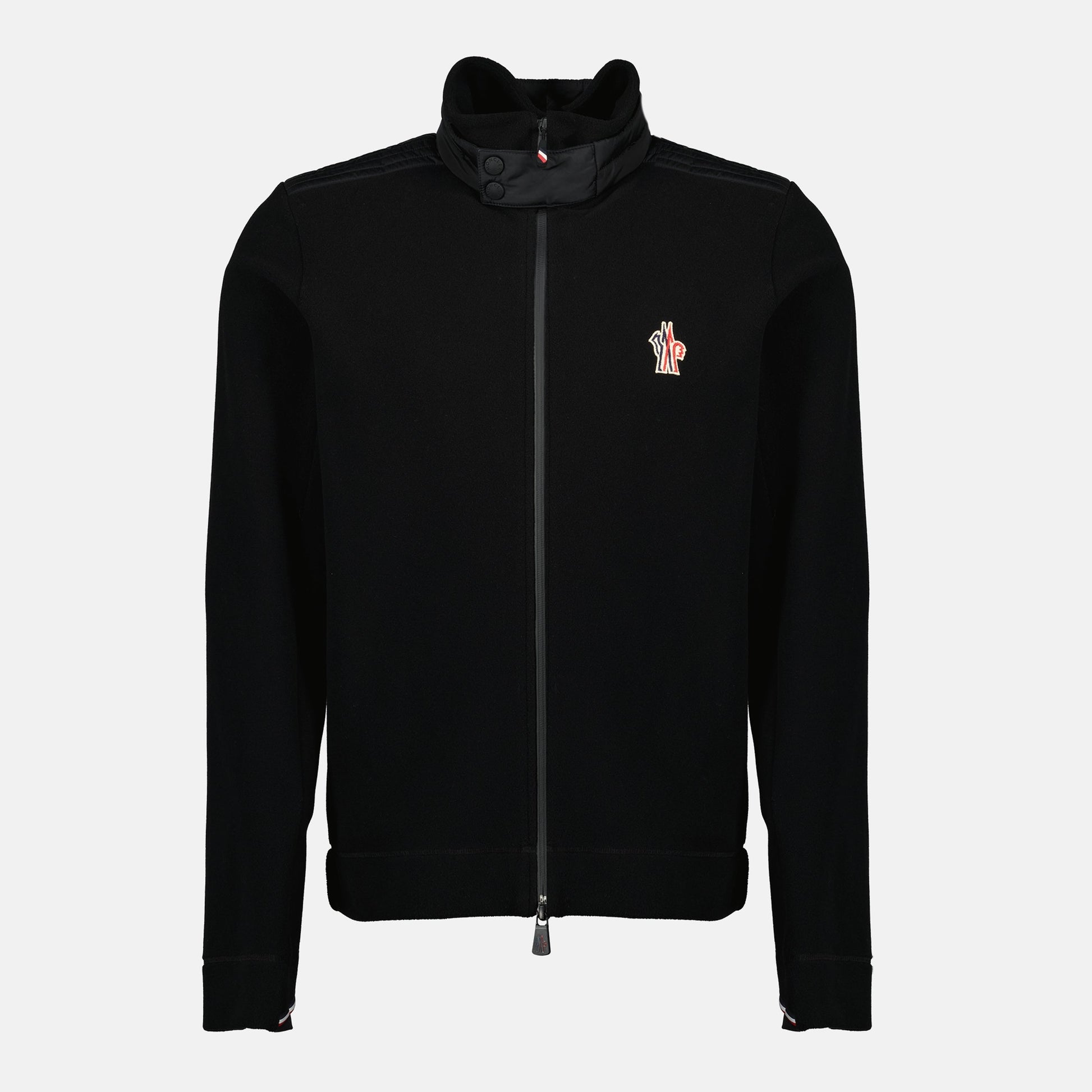 The black fleece zip-up sweatshirt from Moncler Grenoble is designed for men. It is part of the Autumn-Winter 2025 collection.