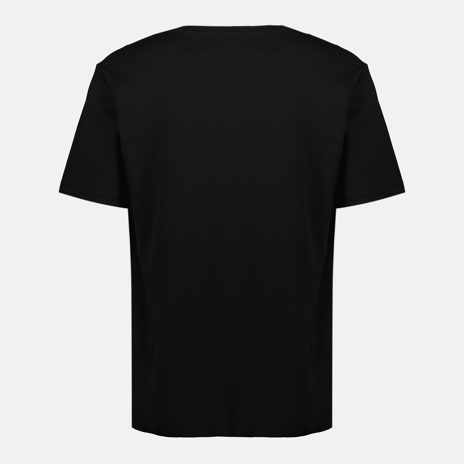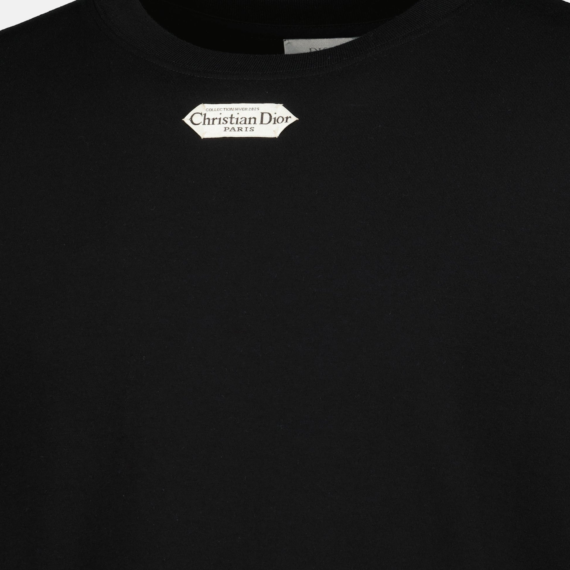 Black tag T-shirt by Dior for men. It is part of the Autumn-Winter 2025 collection and is made of cotton with a round neck and short sleeves.