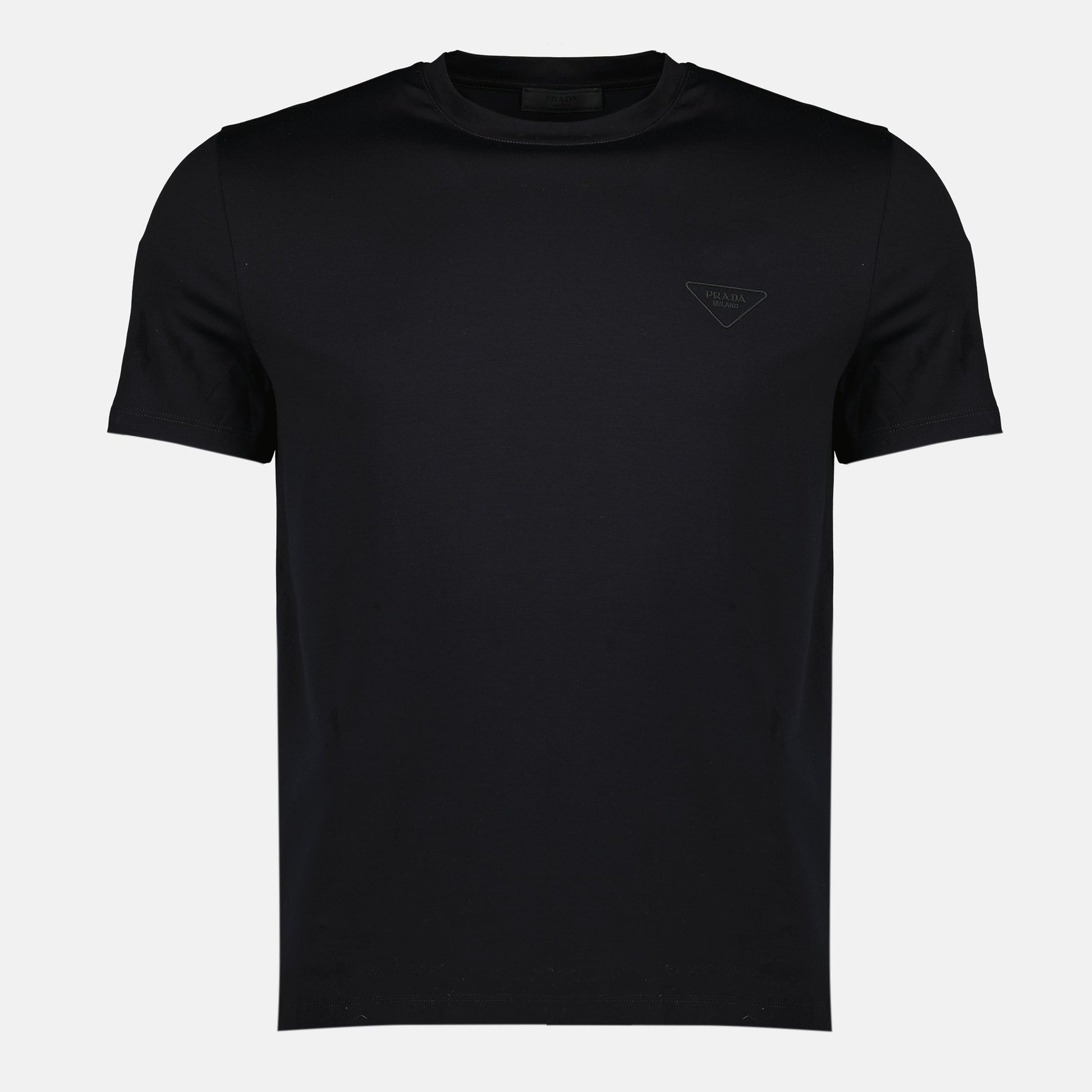 Black logo T-shirt from the brand Prada, designed for men. It is part of the Spring-Summer 2026 collection and is made of cotton.