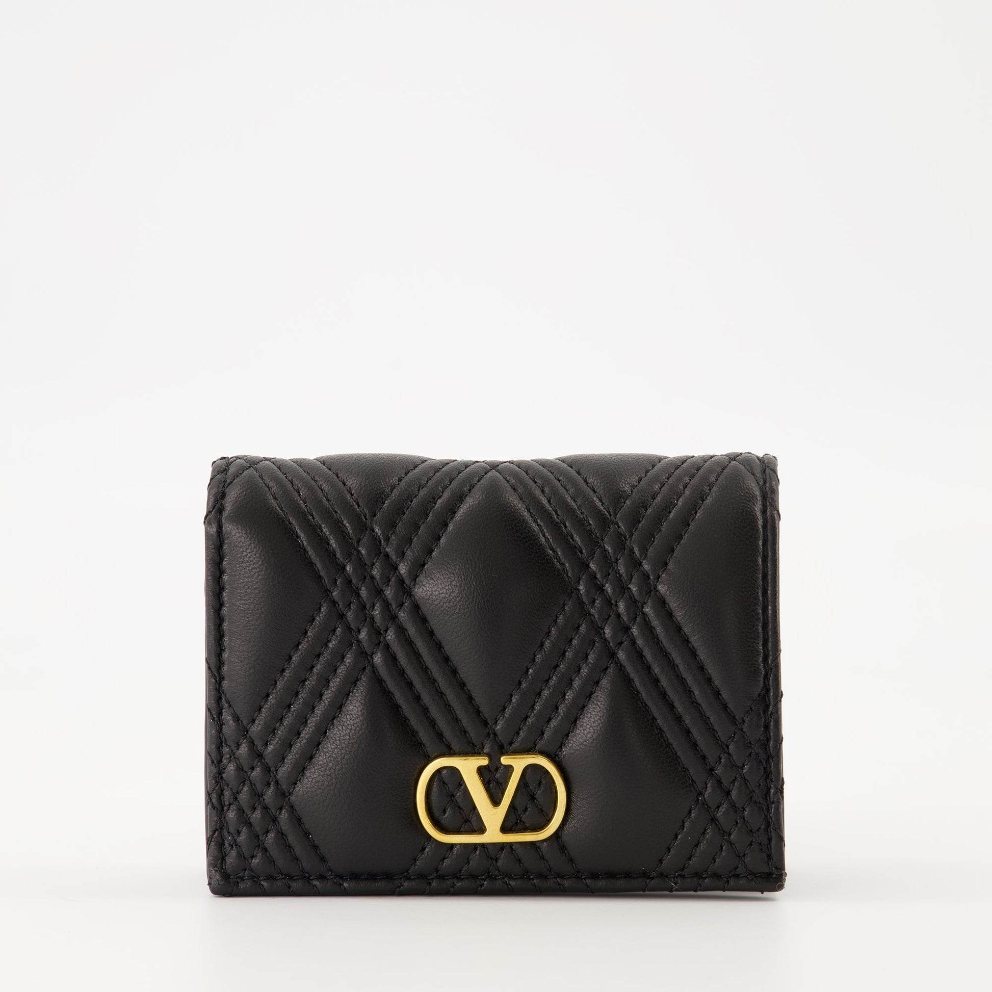 Black Quiltie 67 wallet by Valentino Garavani, designed for women. This piece is part of the Autumn-Winter 2025 collection and is made from quilted lambskin leather.