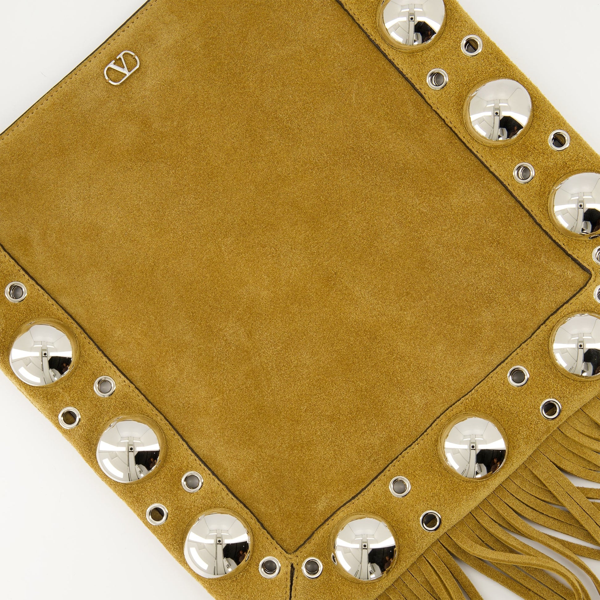 The beige Nellcôte fringe bag from Valentino Garavani is an elegant women's accessory. It is part of the Autumn-Winter 2025 collection and is made of leather and suede.