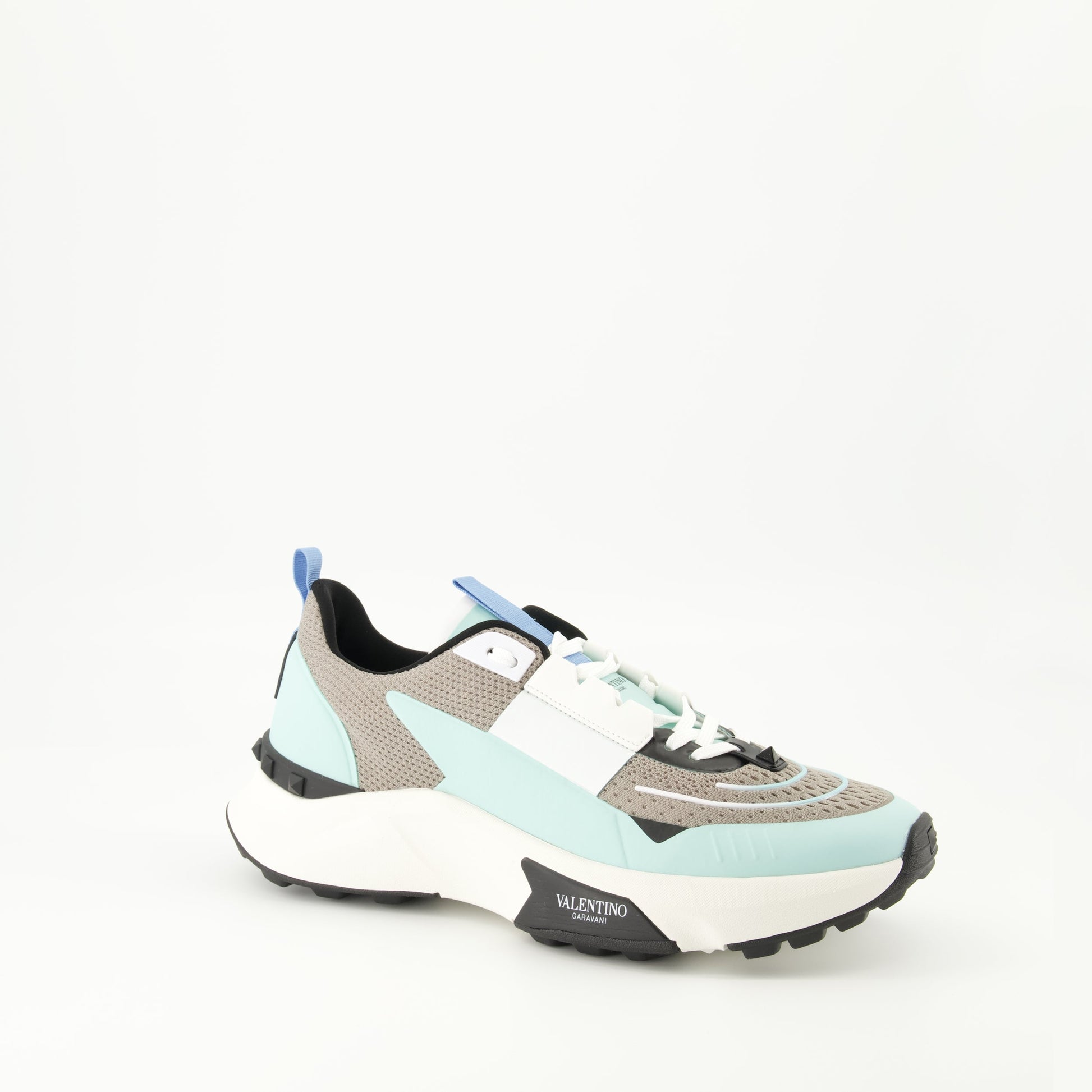 The gray True Act Sneakers by Valentino Garavani are designed for men. Part of the Spring-Summer 2025 collection, they combine calfskin leather and technical fabric.