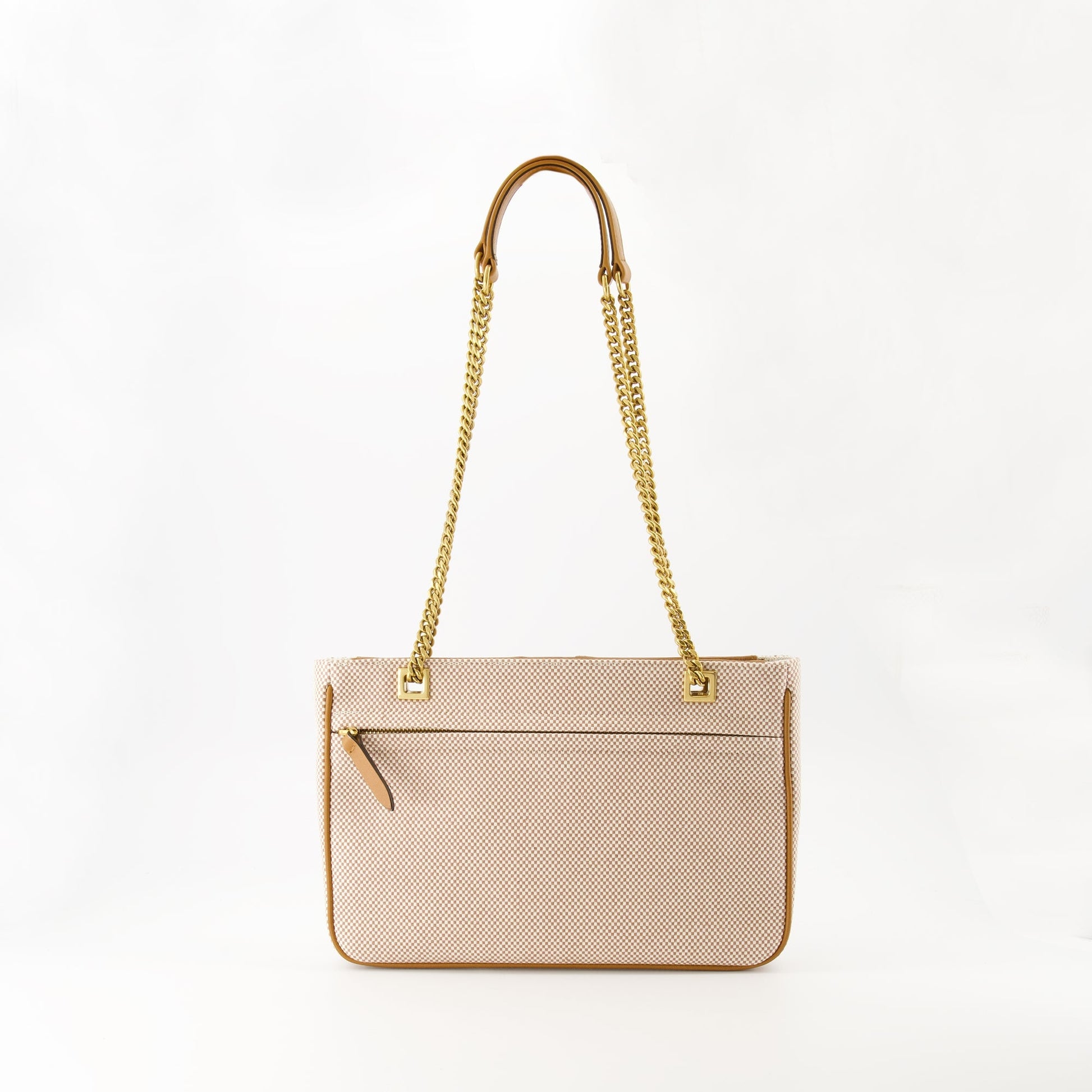The small Viva Superstar tote bag from Valentino Garavani is a women's accessory from the Spring-Summer 2025 collection. It combines cotton and leather with a vintage gold metal finish.