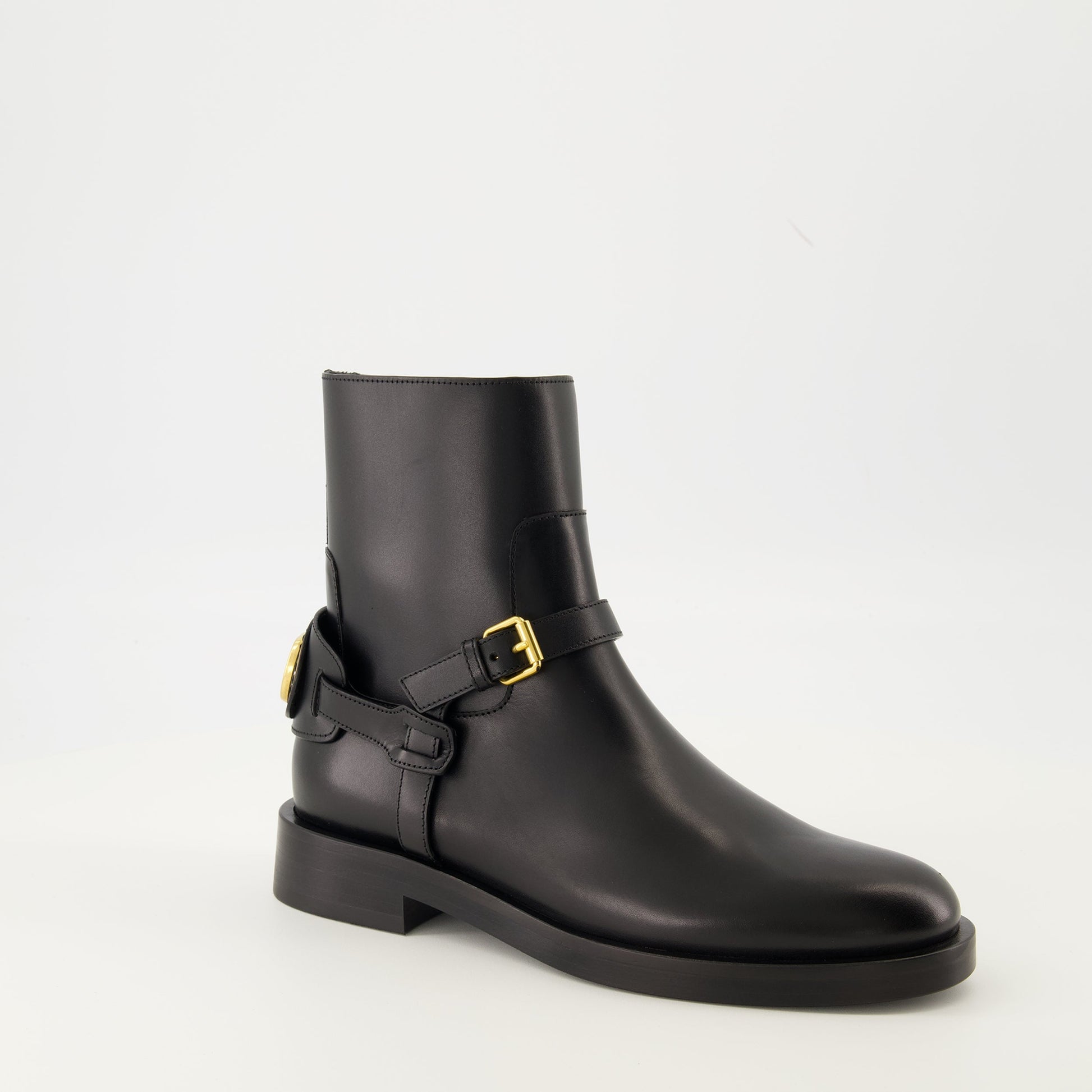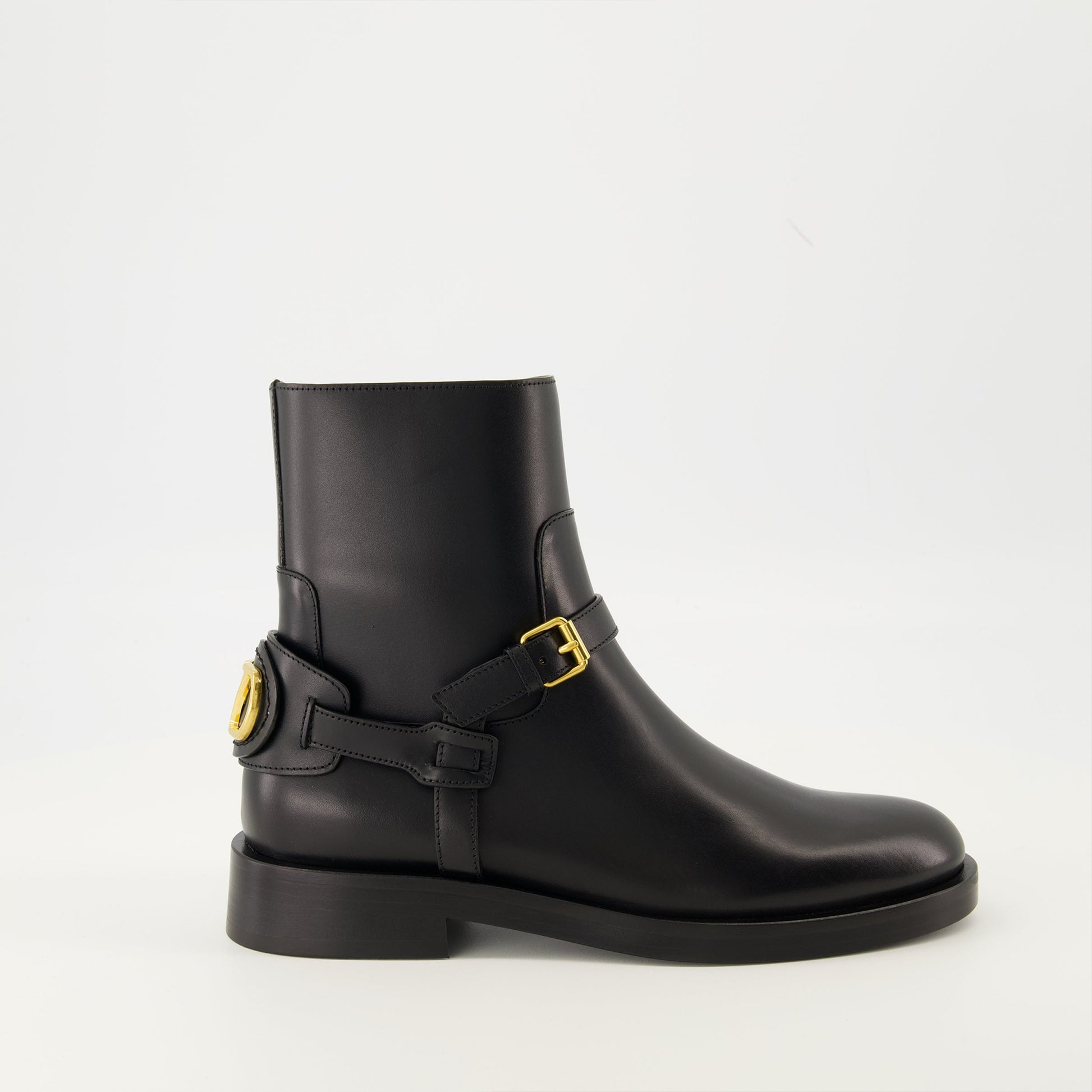 The black VLogo boots from Valentino Garavani for women combine elegance and comfort. Part of the Autumn-Winter 2025 collection, they feature shiny calfskin and a refined design.