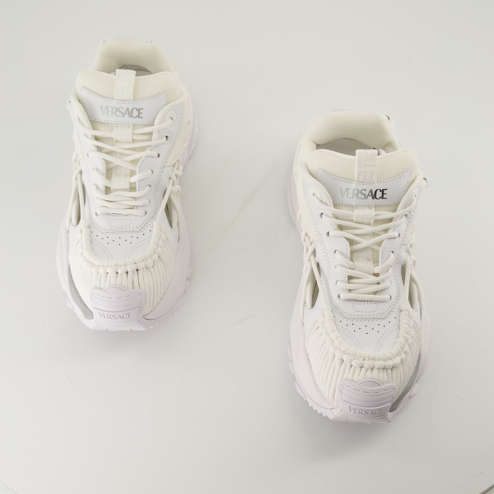 White Mercury sneakers from Versace for women, made of calfskin with a rubber sole. This pair is part of the Spring-Summer 2025 collection.