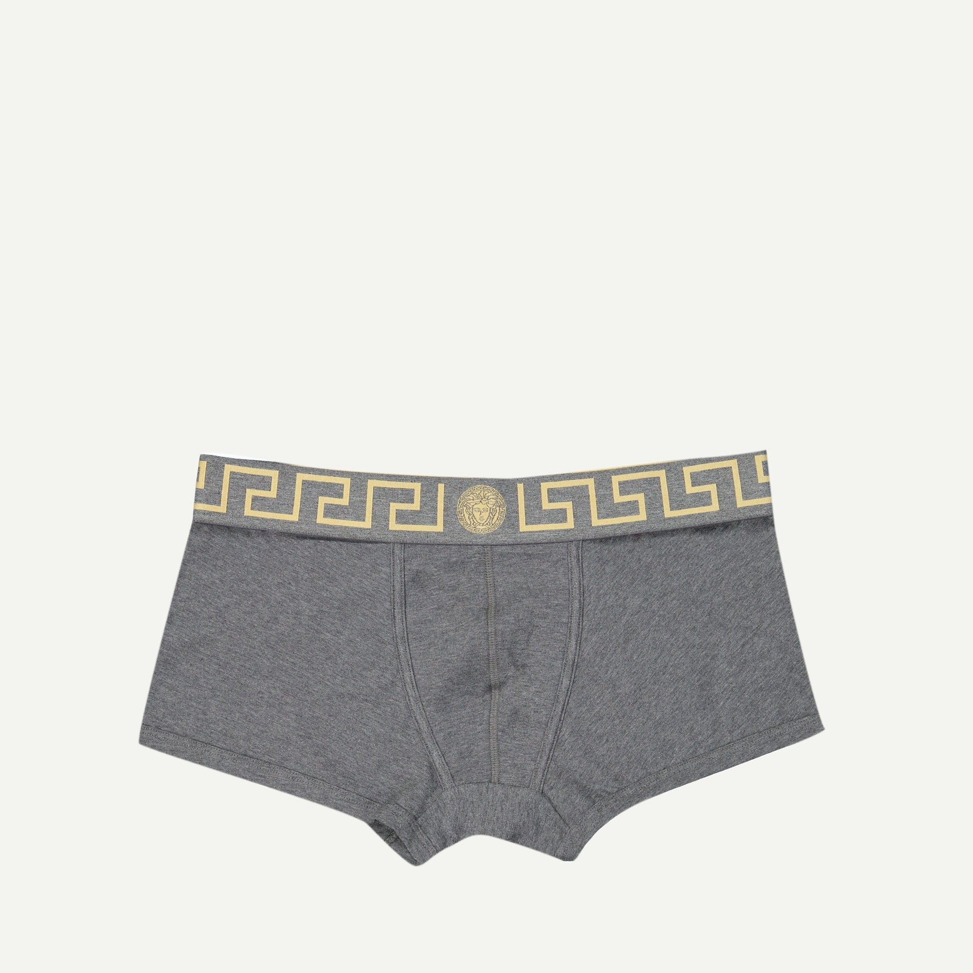 Medusa Greca gray short boxer from Versace for men. Fall-Winter 2024 collection, made of cotton and elastane.
