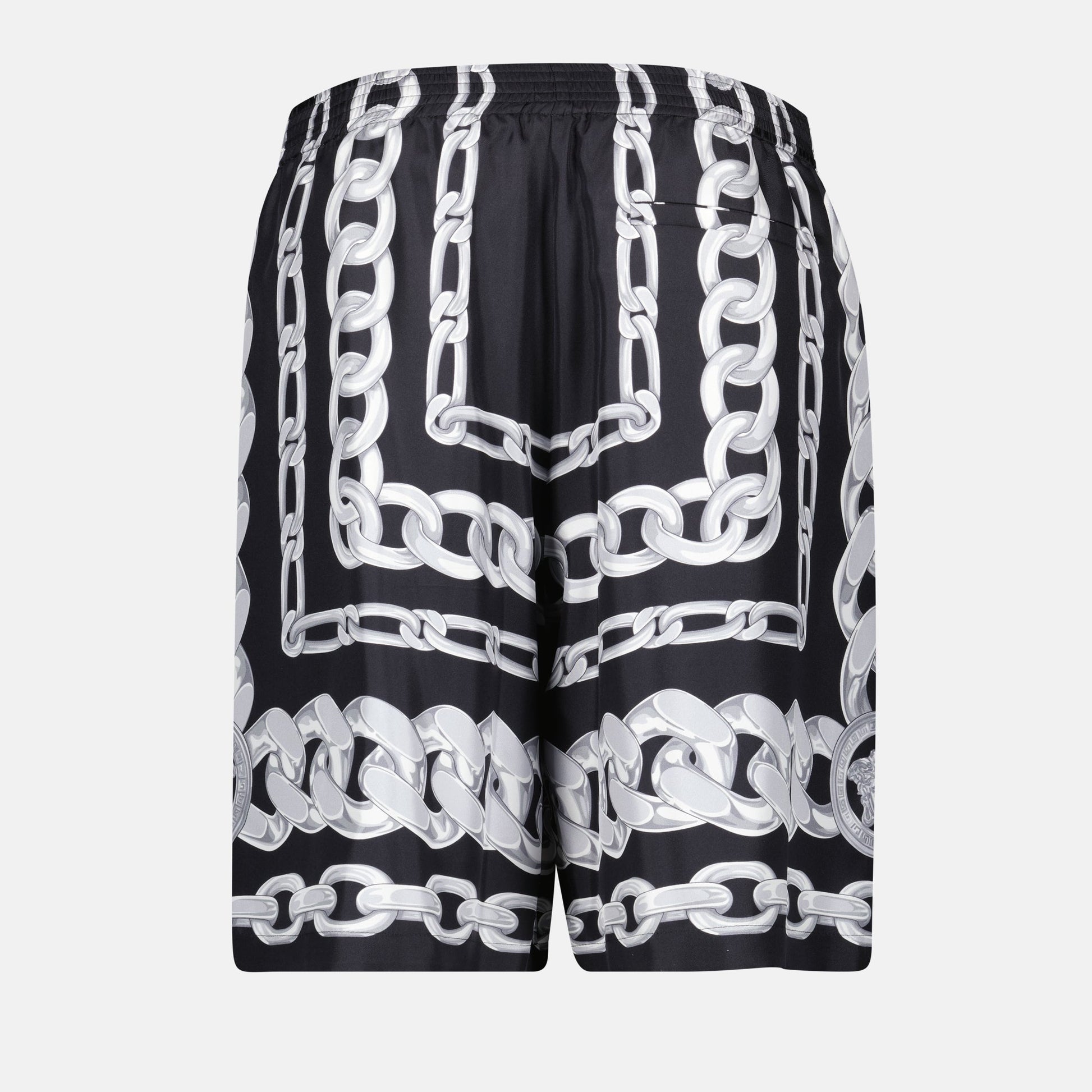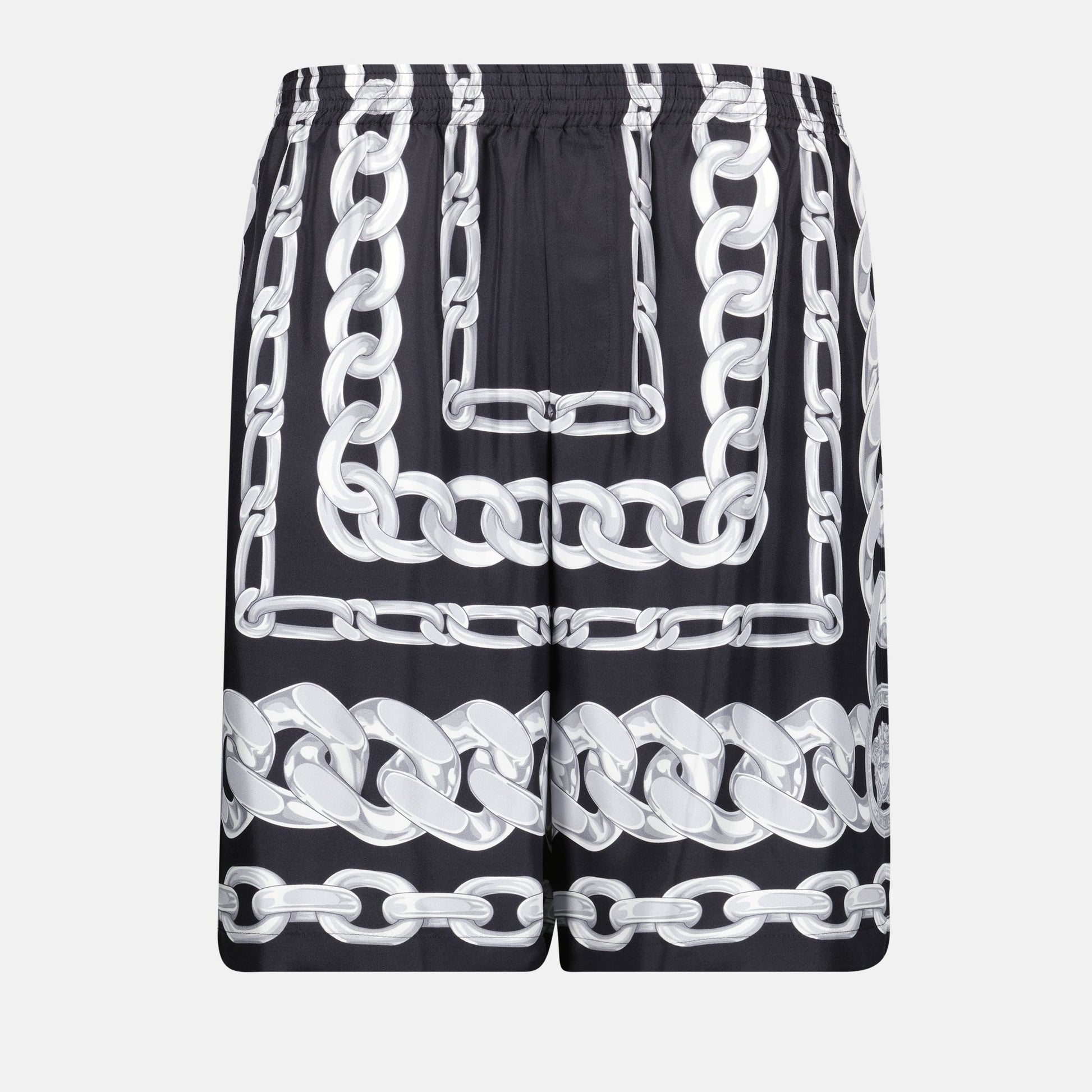 Short Medusa Chains in silk from Versace for men. This piece is part of the Spring-Summer 2025 collection and stands out with its Medusa print and two-tone design.