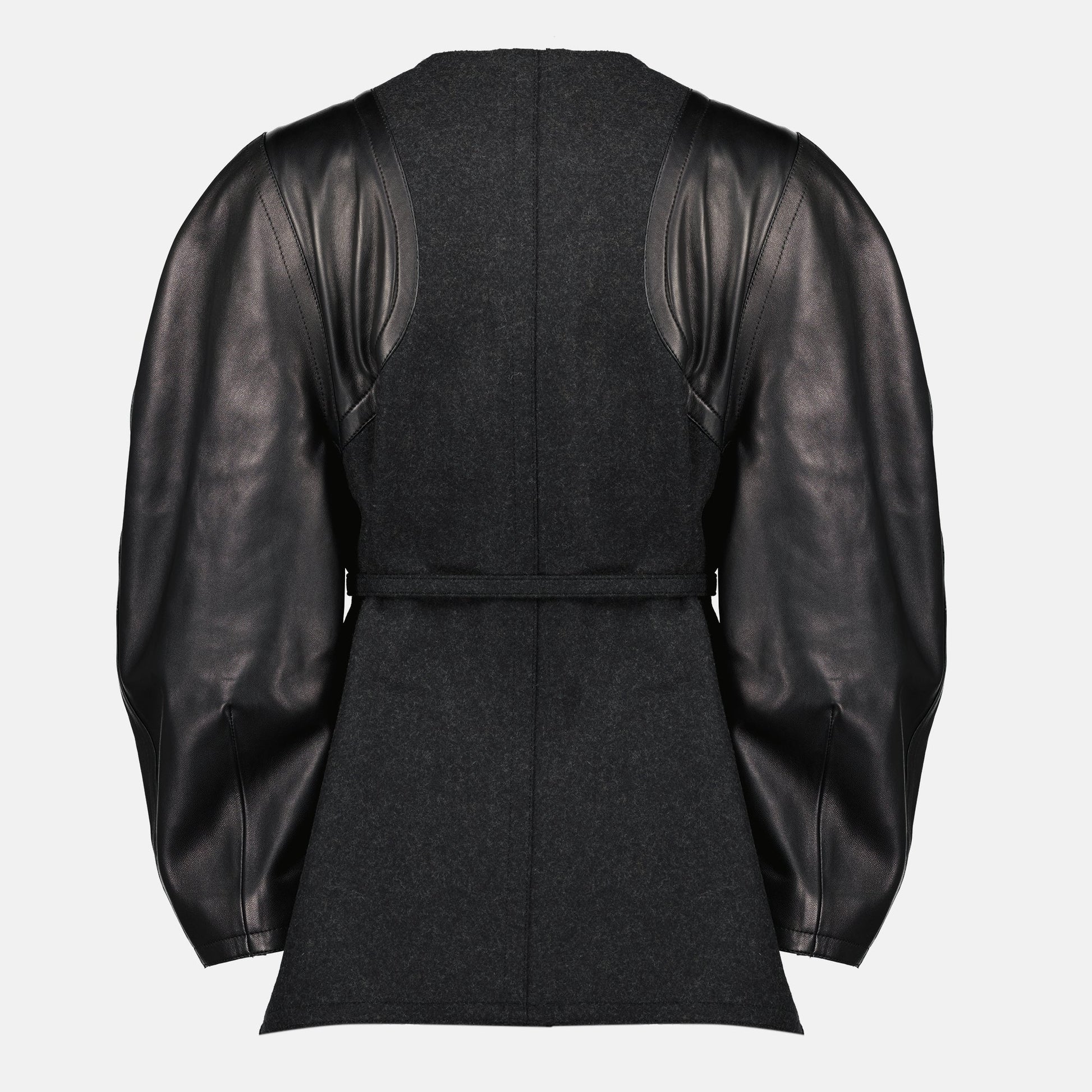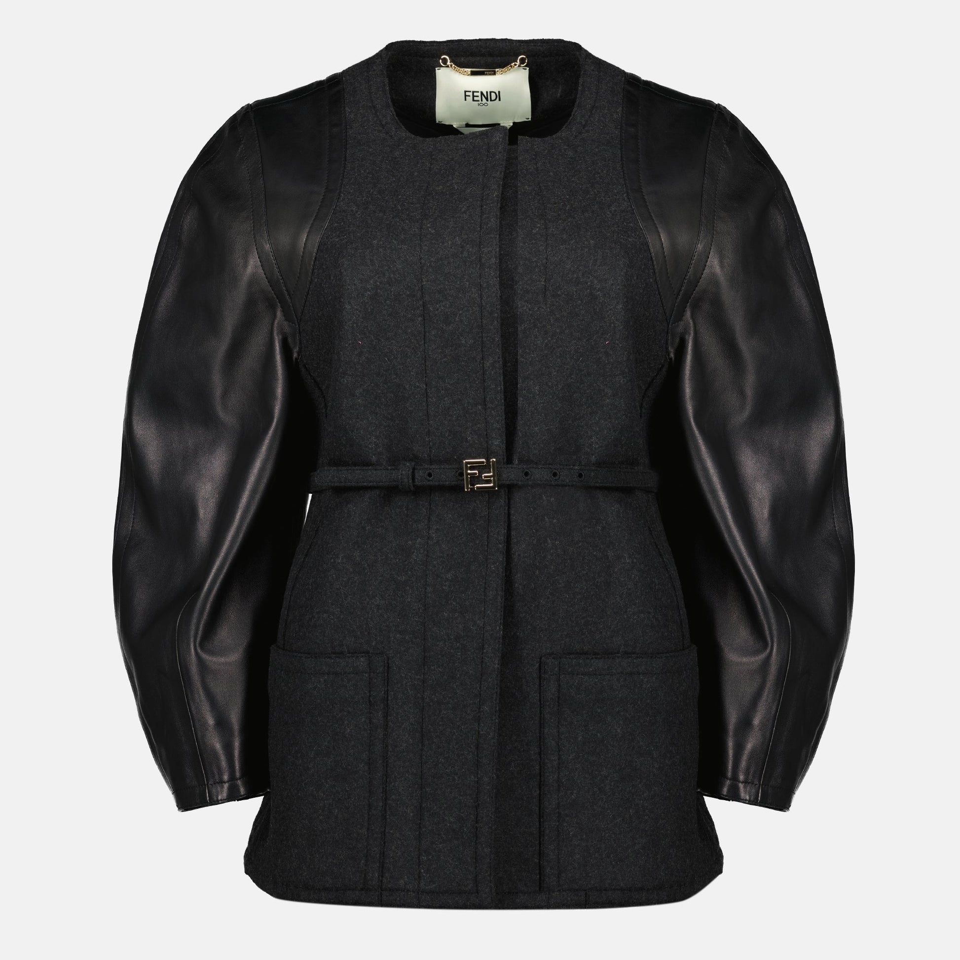 Wool and leather jacket by Fendi for women. It is part of the Autumn-Winter 2025 collection.